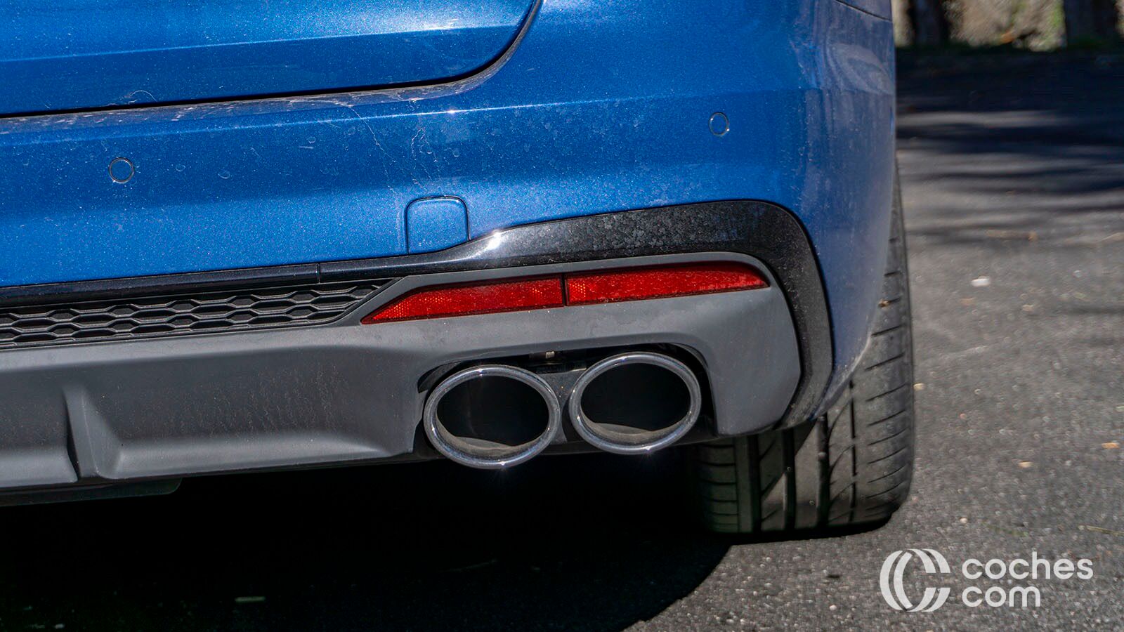 Lo cierto es que parece no necesitarlas con una configuración como la que llevaba nuestra unidad. Los bajos iban en el mismo color que el resto de la carrocería y el negro de contraste le hacía bien. Estaba presente también en los añadidos de la zaga, pues servía como nexo de unión a los pilotos traseros LED, además de estar presente en el logotipo y en el «S4». La parte inferior presenta un paragolpes específico con un difusor con dos salidas de escape dobles. Tremenda desilusión al comprobar que son falsas...