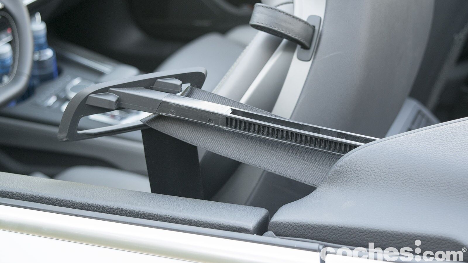 En cuanto a habitabilidad este modelo no será el referente de la marca ni lo busca. Las plazas delanteras son notables, tanto por espacio libre como por acceso. Incluso contamos con comodidades como la pequeña percha eléctrica que nos acerca el cinturón para que no tengamos que girar el torso. Solo en el caso de los más altos podrá haber algún problema de espacio con la capota puesta.