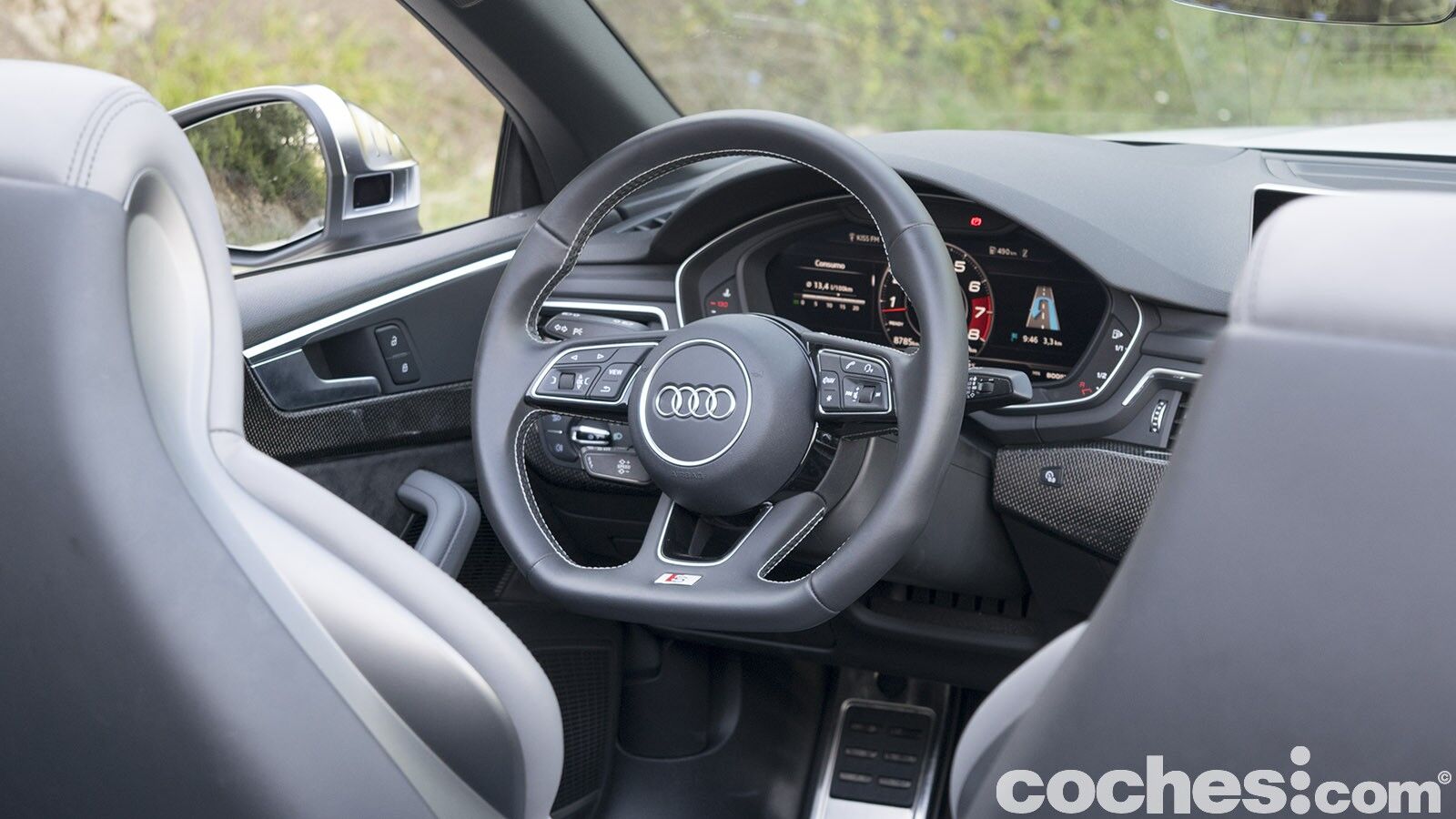 Para mejorar su comportamiento cuenta con los modos de conducción del Audi drive select, un diferencial autoblocante central o el tren de rodaje deportivo S. Mientras que en otros Audi que hemos probado la lista de opcionales era muy extensa, aquí no hay tanto dónde elegir. Nuestra unidad contaba con asientos deportivos S, inserciones de carbono, tapicería de cuero Napa y algunos elementos de seguridad más.