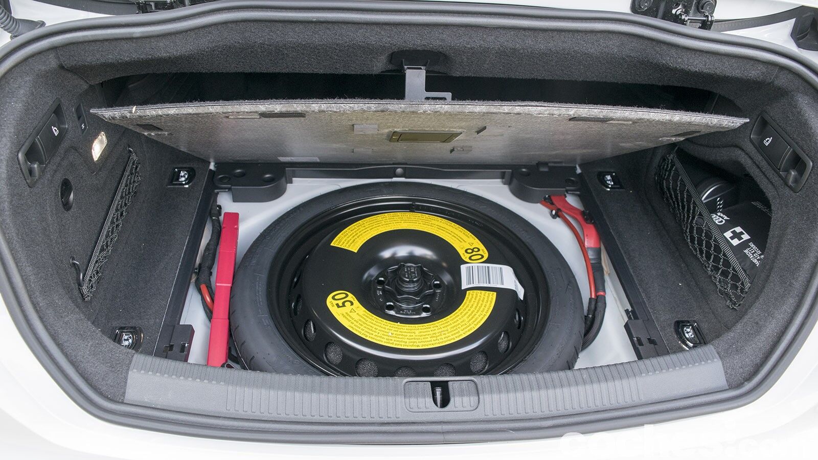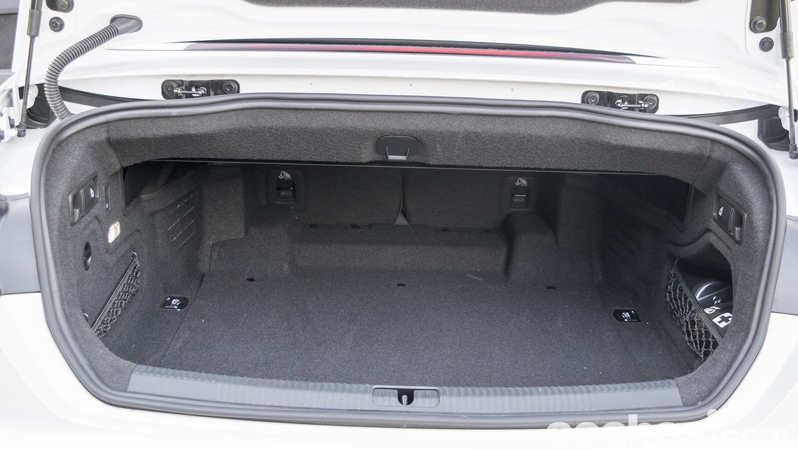 El maletero del Audi S5 Cabrio es bastante grande para lo que podemos esperar de un descapotable. Cuando llevamos la capota desplegada cuenta con 380 litros de capacidad (uno de los mejores de su categoría), mientras que cuando la plegamos ocupa espacio en esta zona y reduce el maletero hasta los 320 litros. Aún así contamos con unas formas bastante rectas y aprovechables para meter todo tipo de objetos.
