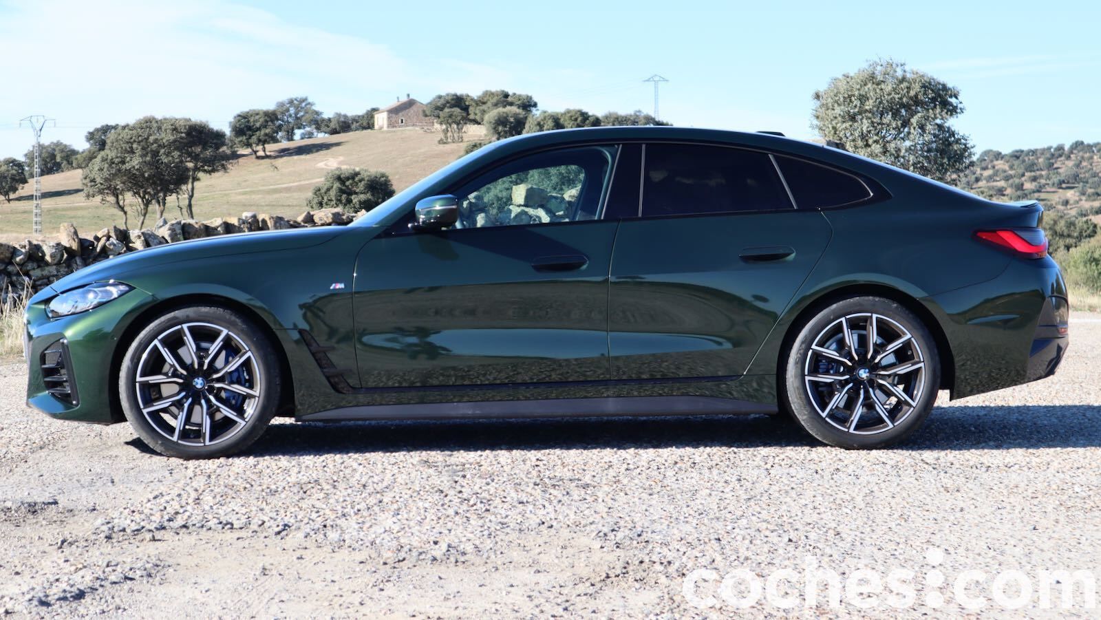 De perfil vemos claramente la línea coupé, con un capó alargado, voladizos cortos y una caída del techo hacia la zaga. Nos gustaron sus cuatro puertas sin marco, un detalle muy BMW. Un rasgo específico son las manillas enrasadas, que no encontramos en los Coupé y Cabrio.