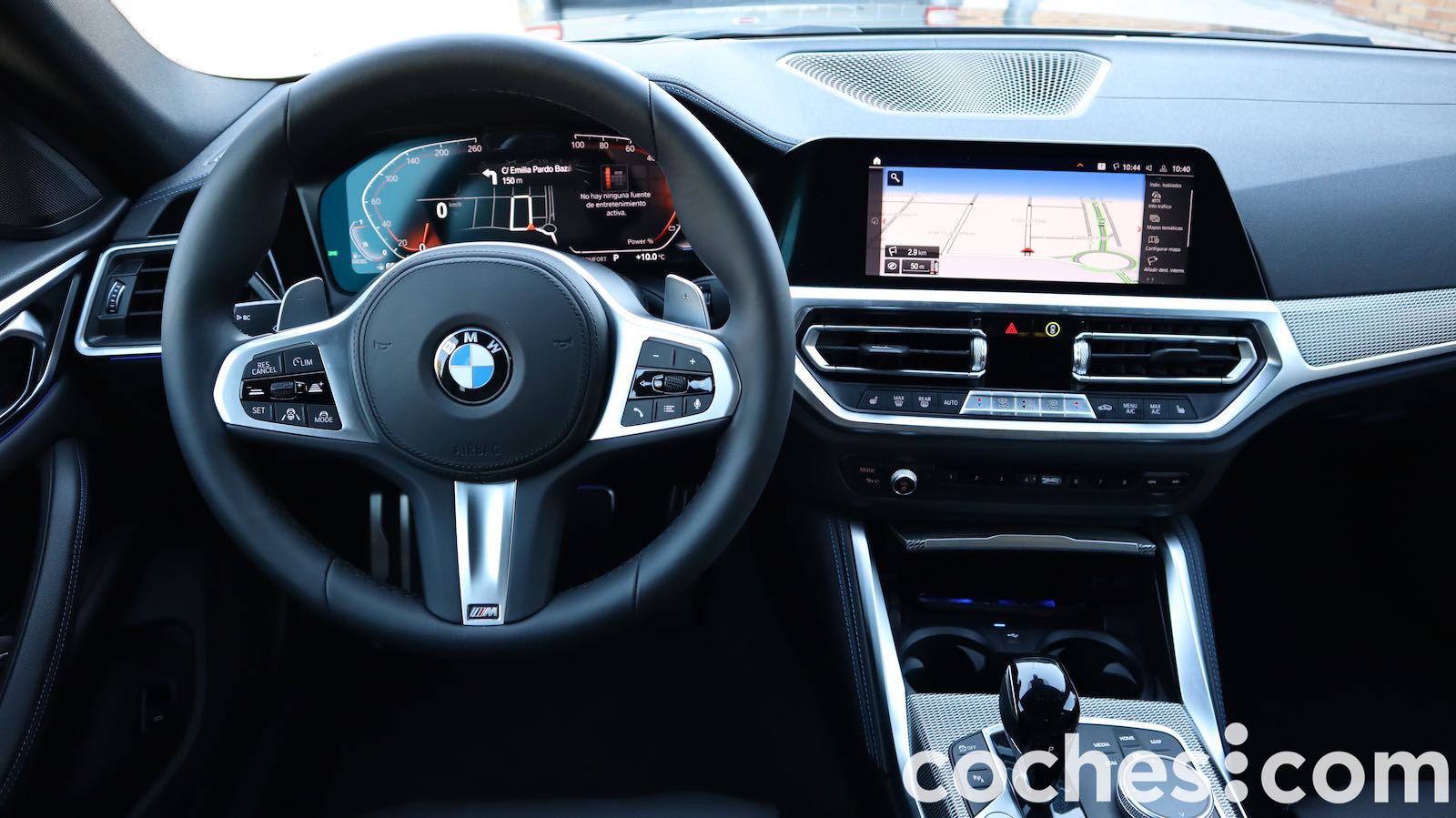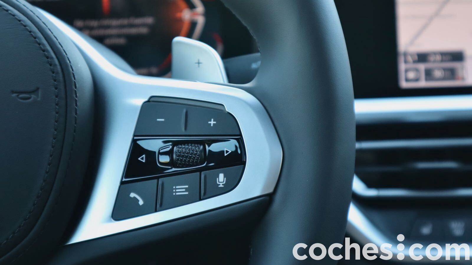 El volante da gusto asirlo y cuenta con levas solidarias para controlar el cambio. De serie cuenta con el volante de cuero Sport (M en nuestra unidad) y desde él se controlan muchos de las ayudas a la conducción semiautonoma.