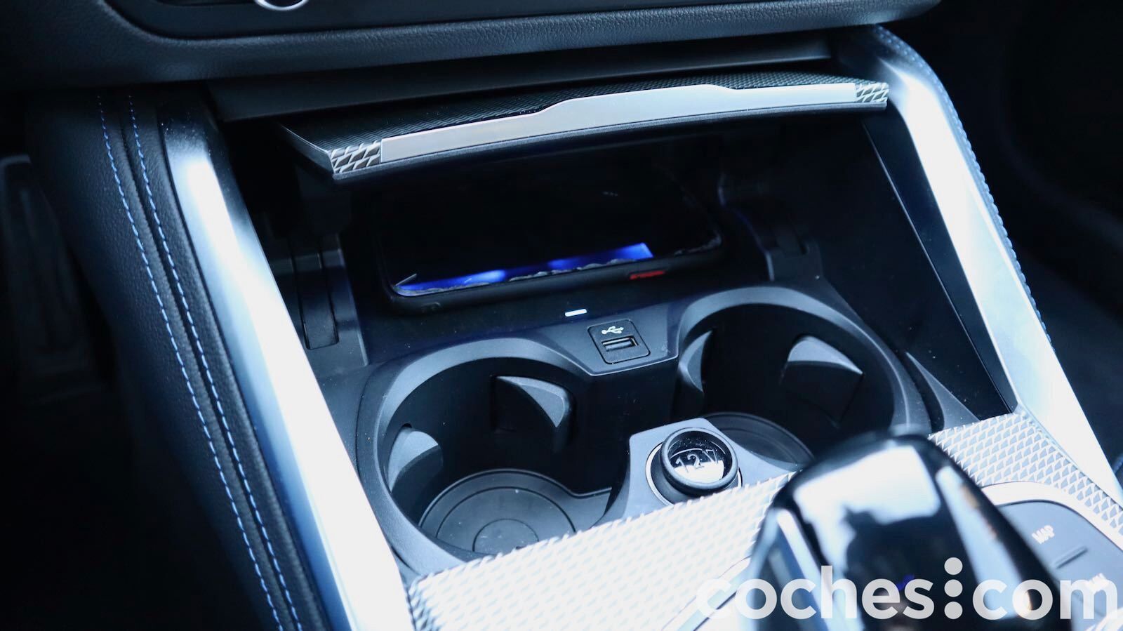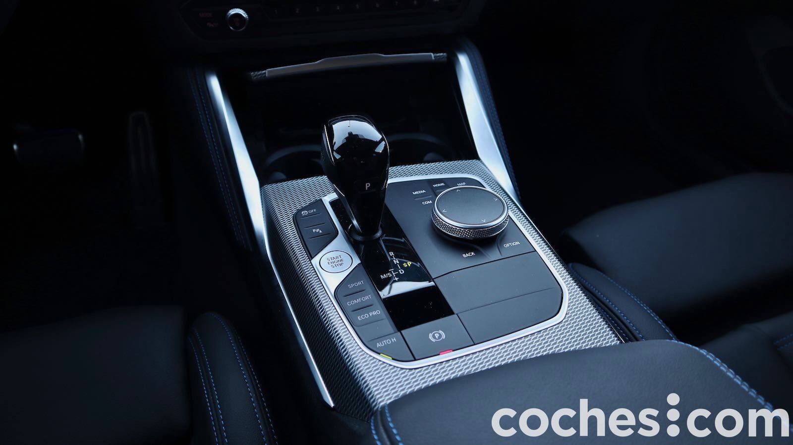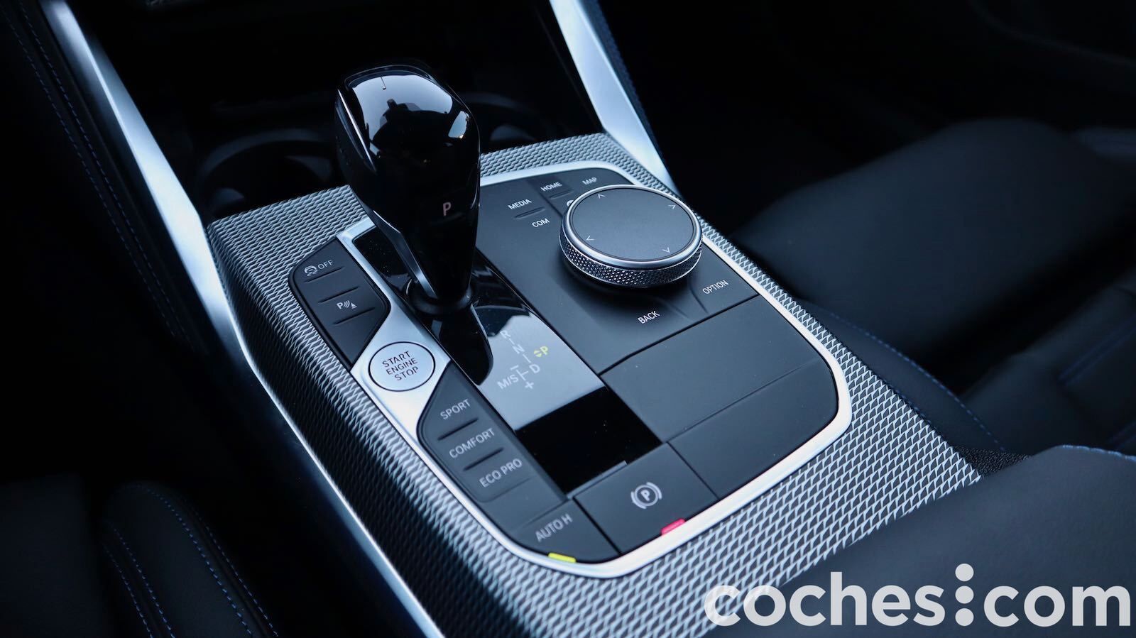 Destaca el salpicadero en forma de V, con una consola central elevada que da una sensación de ir muy recogido en el puesto de conducción. Es en la consola donde se ubica el botón de arranque, el freno de estacionamiento eléctrico o la palanca del selector del cambio automático Steptronic.