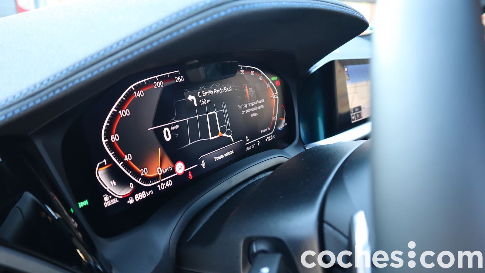 En el salpicadero destaca la pantalla de más de 10 pulgadas en el salpicadero, táctil pero que puedes controlar desde el mando giratorio entre los asientos… o mediante gestos. También cuenta con un cuadro de instrumentos digital de 12,3 pulgadas pero que es poco configurable.
