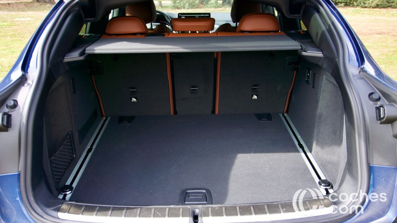 El maletero del BMW X4 tiene 525 litros de capacidad bien estructurados gracias a sus formas rectas y aprovechables. Son solamente 50 litros menos que el X3, así que convence en este aspecto. Lo hace también por su puerta completa, que nos deja con una boca de carga muy amplia, aunque situada a una altura algo elevada comparado con otros modelos. En su interior vemos redes y ganchos para dividir la carga de forma sencilla.