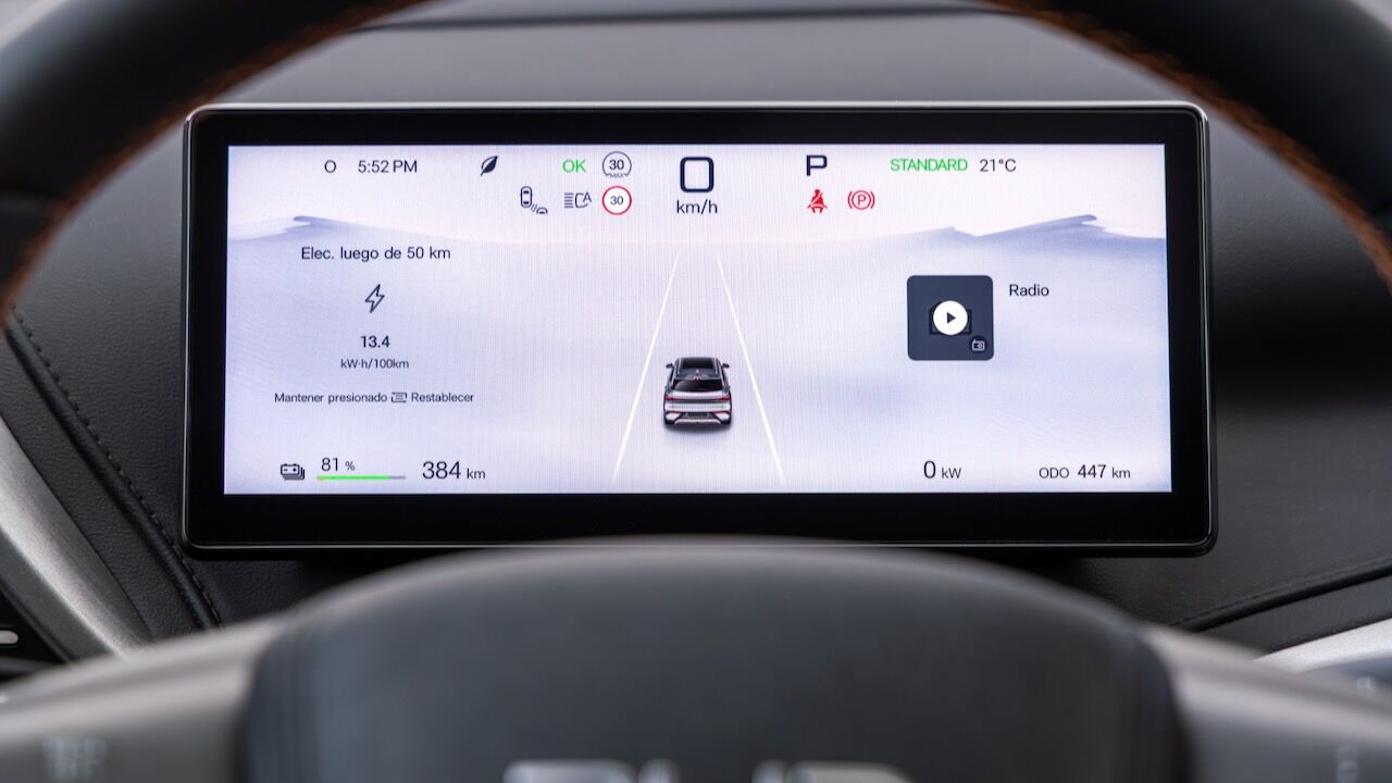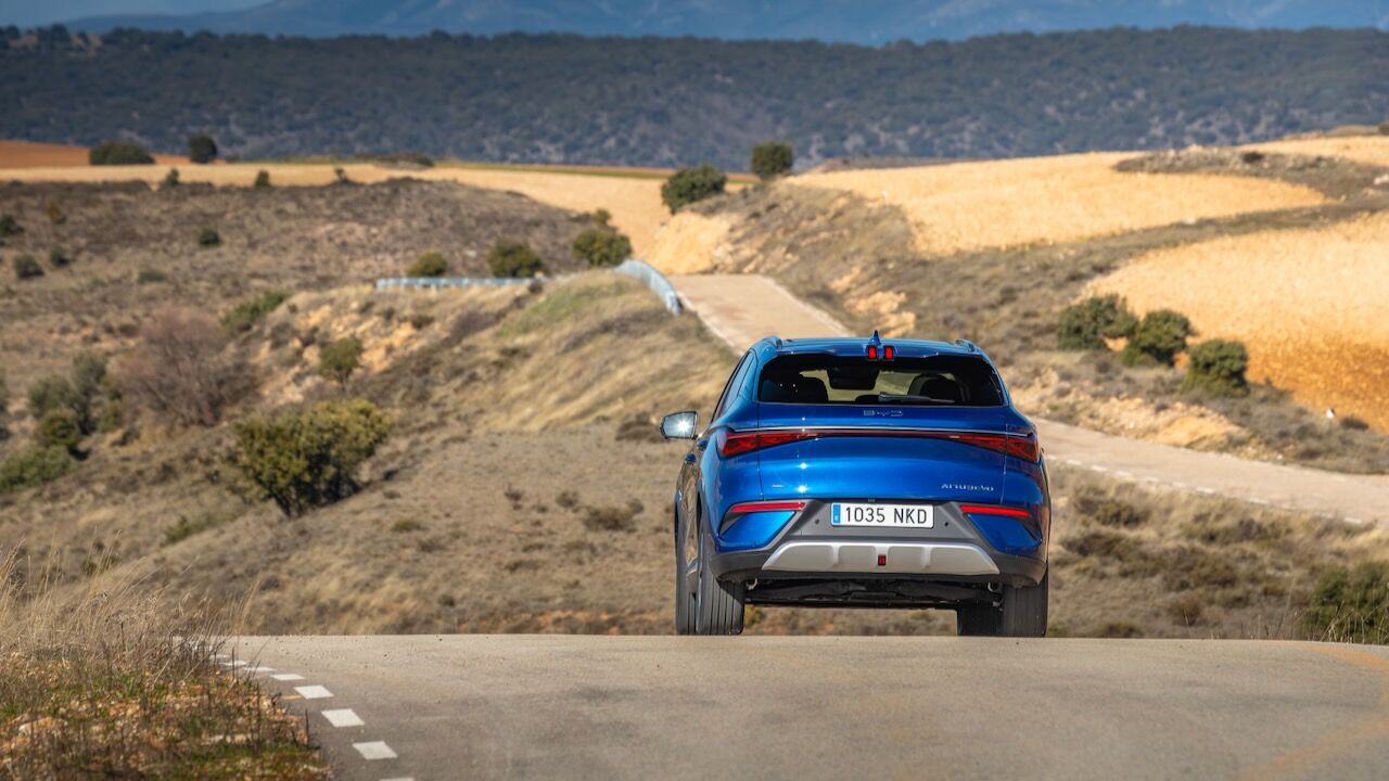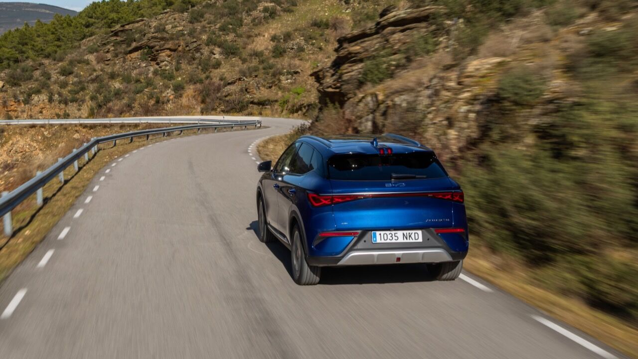 La entrega de par es inmediata, contundente, pero a la vez muy lineal y fácil de dosificar. Y esta mejora dinámica también se consigue con la tecnología Cell to Body (CTB). Se integra el paquete de baterías en el del propio chasis y da ima rigidez torsional muy superior. Esta solidez se percibe en cada curva, el coche pisa con un aplomo envidiable y contiene las inercias de la carrocería con eficacia. Transmite confianza al conductor incluso enlazando giros a un ritmo animado.