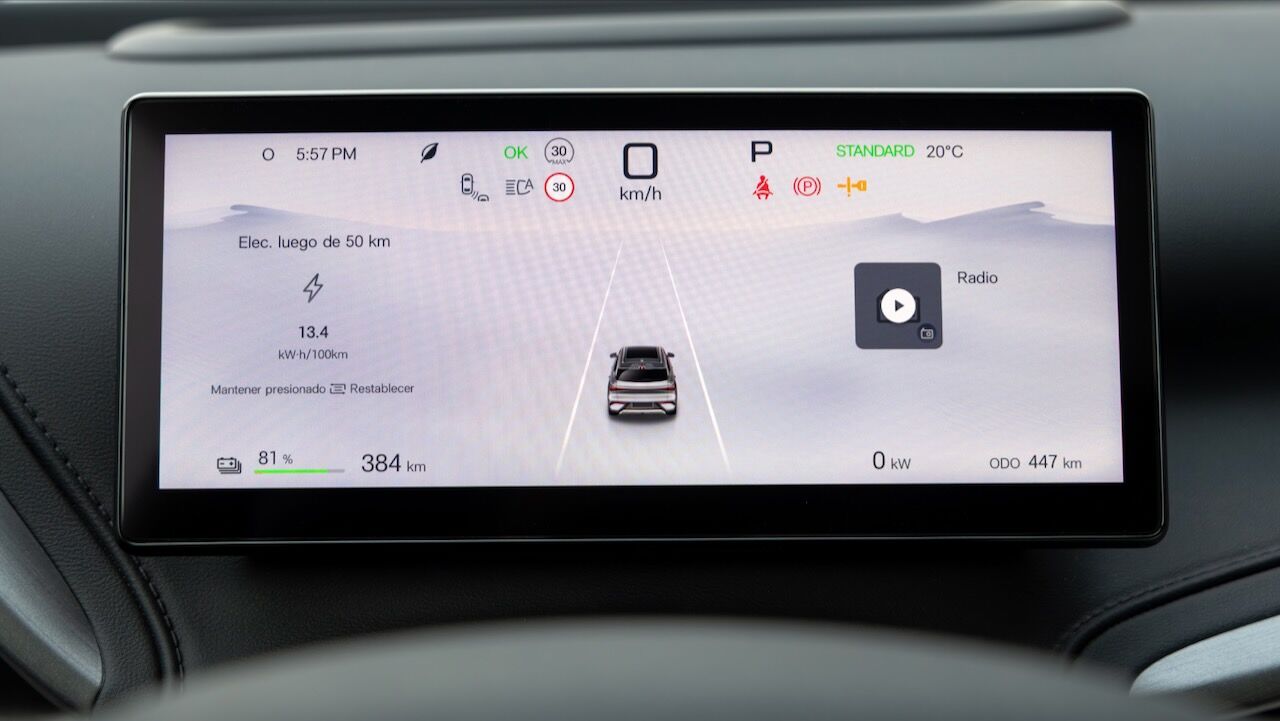 En los primeros kilómetros al volante, queda patente que estamos conduciendo un coche totalmente distinto a su predecesor. El paso a una configuración de propulsión trasera (en nuestro caso) o tracción total cambia por completo la experiencia. Gestiona mejor esas pérdidas de motricidad y las interferencias en la dirección que suelen padecer los eléctricos de tracción delantera. Era necesario, pues el aumento de potencia es brutal y pasa de 204 CV a los 313 CV que tenemos bajo el pie derecho.