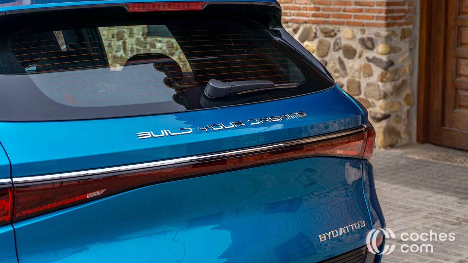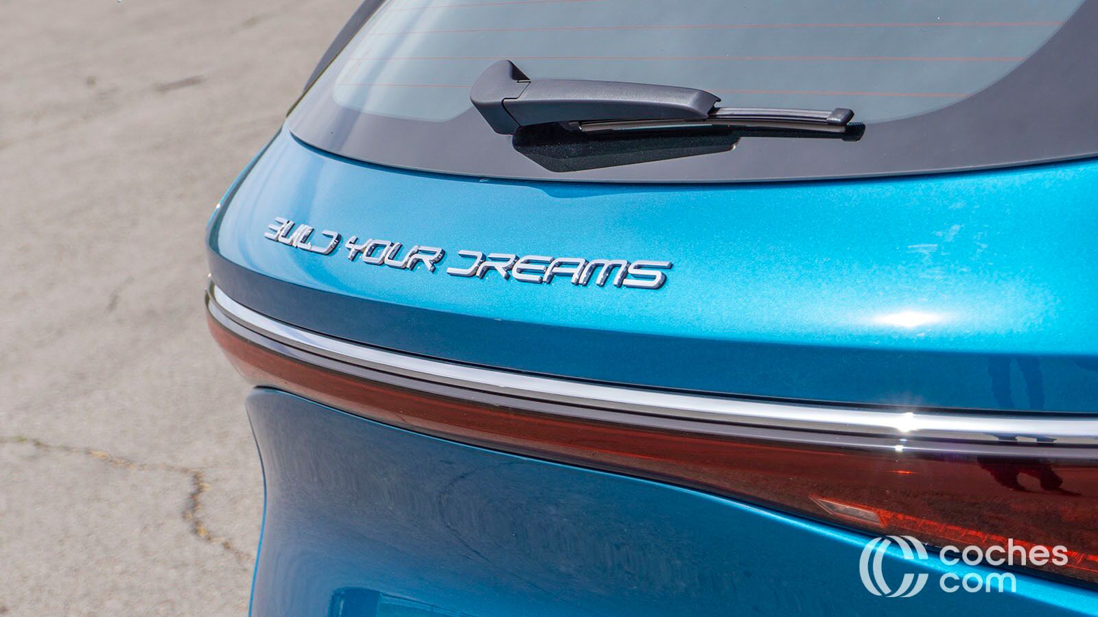 Por otro lado, hay que hablar de una zaga igualmente diferenciada. Comienza con el spoiler de techo, justo por encima de la luna. En la parte superior del portón está la firma «build your dreams» para dejar claro cuál es el lema de la marca y de dónde vienen sus siglas. La parte intermedia queda para unos pilotos traseros LED unidos por el centro y reforzados por un listón cromado. La parte baja tiene una especie de difusor en el color de la carrocería y una defensa.