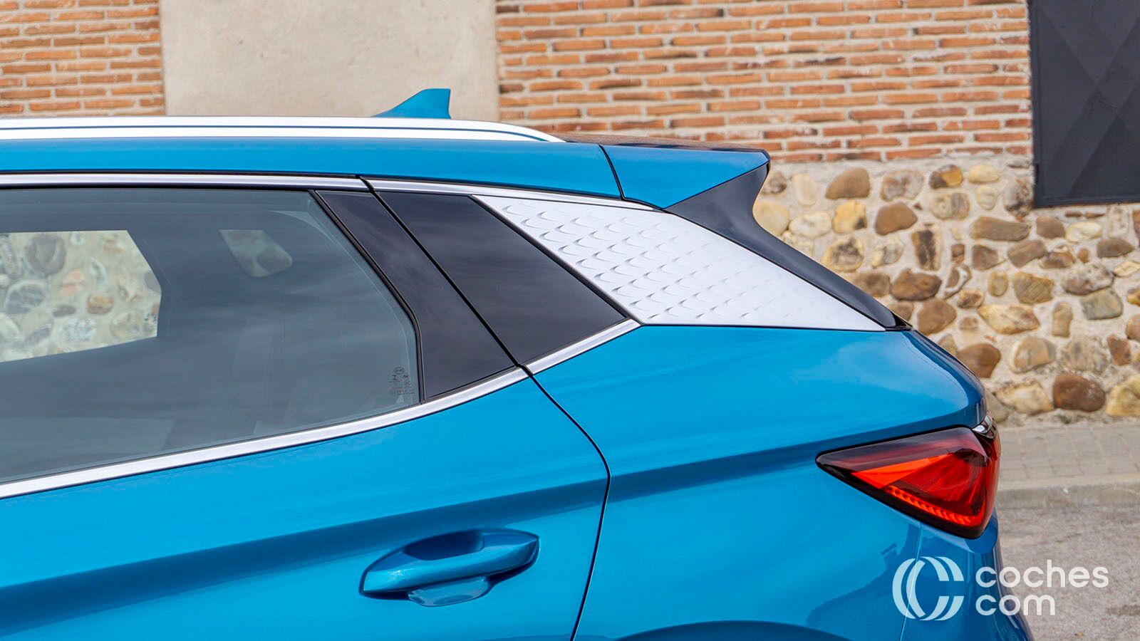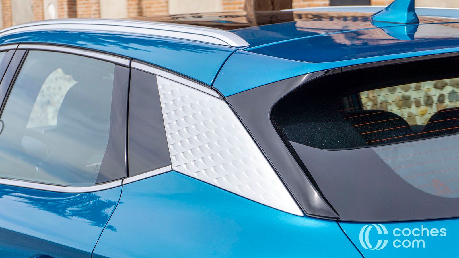 Seguimos por la parte inferior del frontal con unas tomas de aire y molduras en contraste que acentúan su deportividad. Algo que también se consigue con unas llantas de 18 pulgadas que viene de serie. La carrocería se puede elegir en cinco tonos diferentes, habiendo bastante colorido en la gama. En todo caso, los bajos van cubiertos por plástico negro, pues no hay que olvidar que estamos ante un modelo crossover. También hay algunos cromados en los marcos de las ventanillas, barras de techo y pilar C.