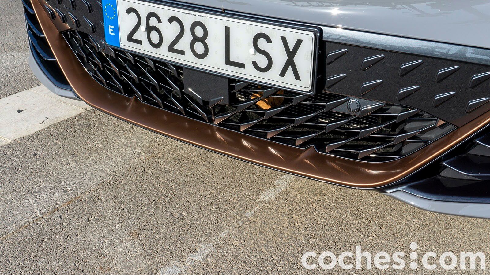 Tampoco pasan desapercibidos los afilados faros LED o la enorme parrilla que queda en la parte inferior. Como buen Cupra, cuenta con detalles en color Copper, como es el caso de la V en la parte inferior o los propios logotipos. Aunque en el lateral lo que se lleva todas las miradas son las llantas de hasta 20 pulgadas, algunas con diseños muy sugerentes y aerodinámicos. En esta vista también se aprecia el detalle del techo flotante, con un pilar C que introduce los motivos triangulares que siempre han representado a Cupra, o los prominentes faldones laterales.