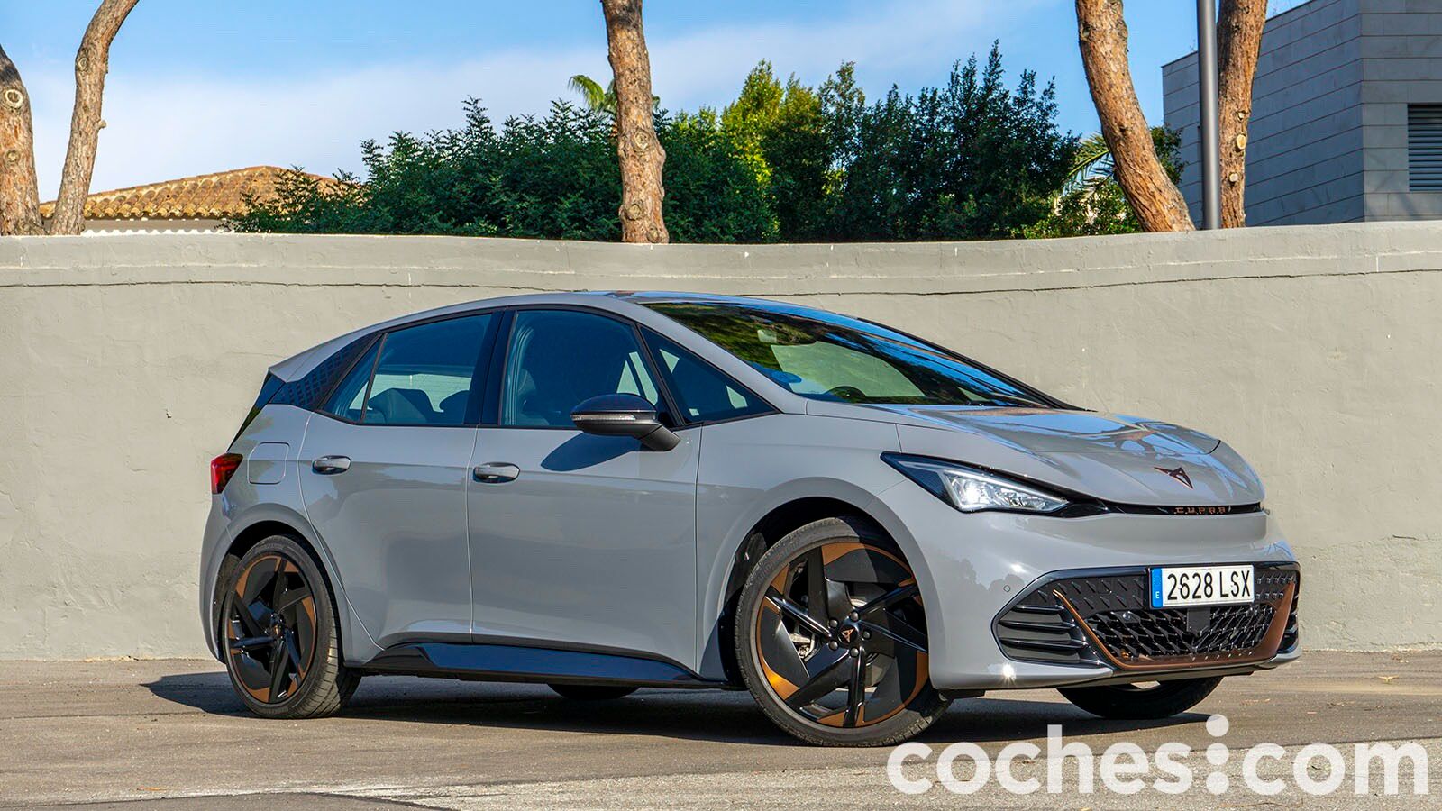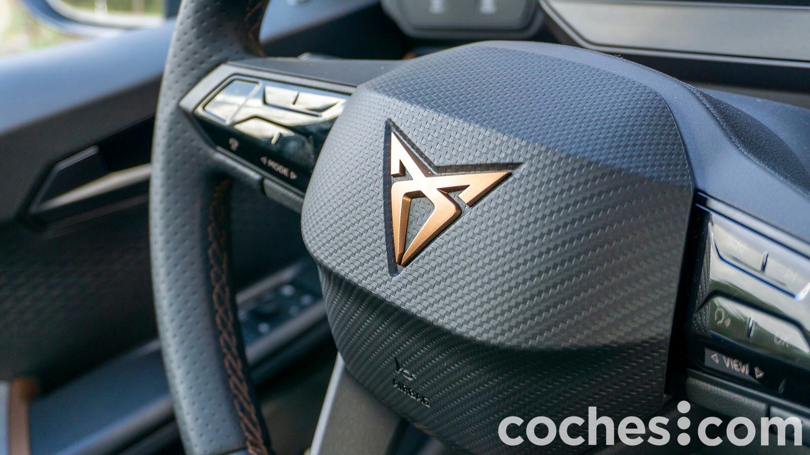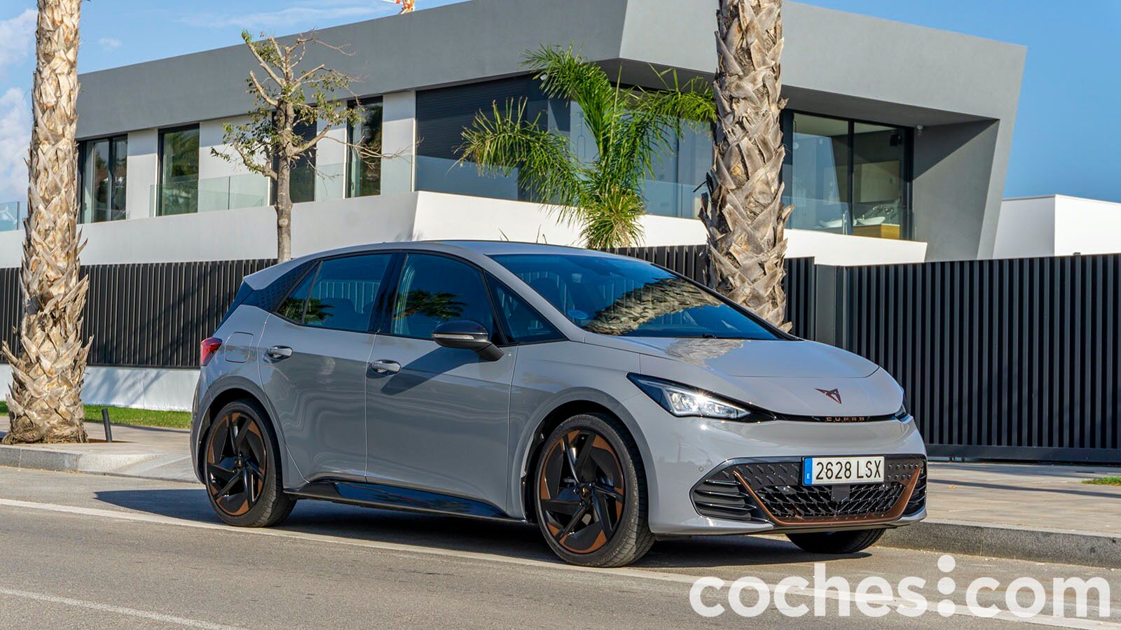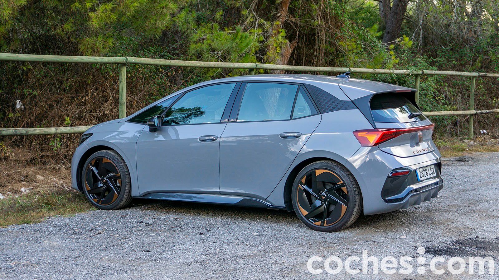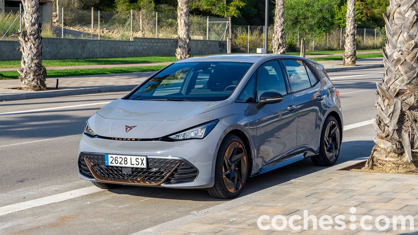Porque como buen Cupra, este modelo consigue un comportamiento dinámico bastante conseguido para ser un eléctrico. Ya de serie cuenta con detalles como una dirección progresiva que consigue un tacto más natural. Sigue siendo demasiado asistida y no transmite tanto como nos gustaría, pero es mejor que la que tienen otros rivales. Aunque la clave en este modelo es la suspensión rebajada, que es 15 mm más baja delante y 10 mm más baja detrás respecto a otros modelos con la plataforma MEB.