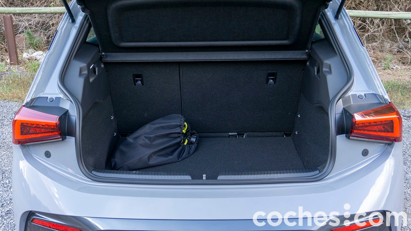 El maletero no es de los puntos más destacados del Cupra Born. En este caso, se ha dado prioridad a un espacio generoso en las plazas traseras y se ha dejado esta superficie con 385 litros. No es una cifra mala, pero hay rivales que la superan y que la complementan con el maletero frontal, que en este ejemplar no aparece. La parte positiva es que sus formas son muy regulares y aprovechables.