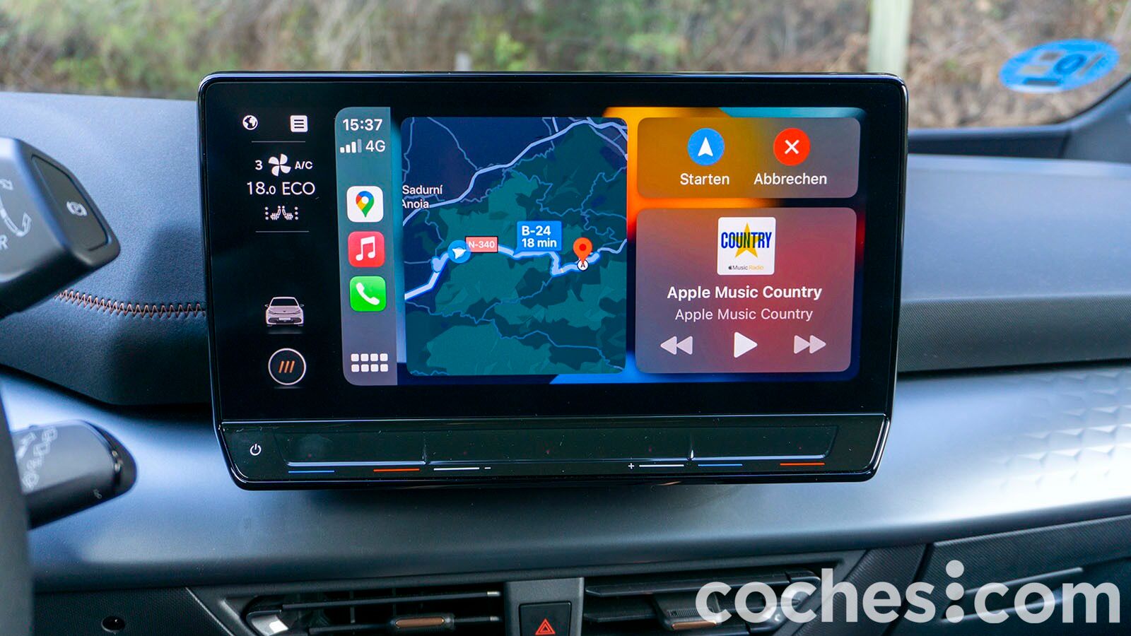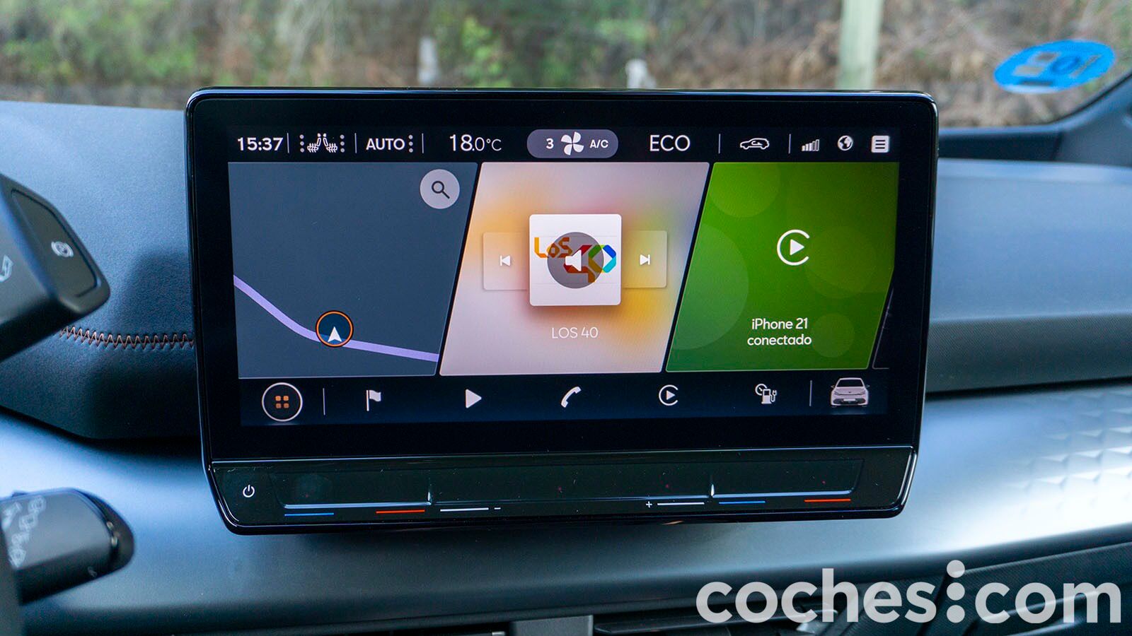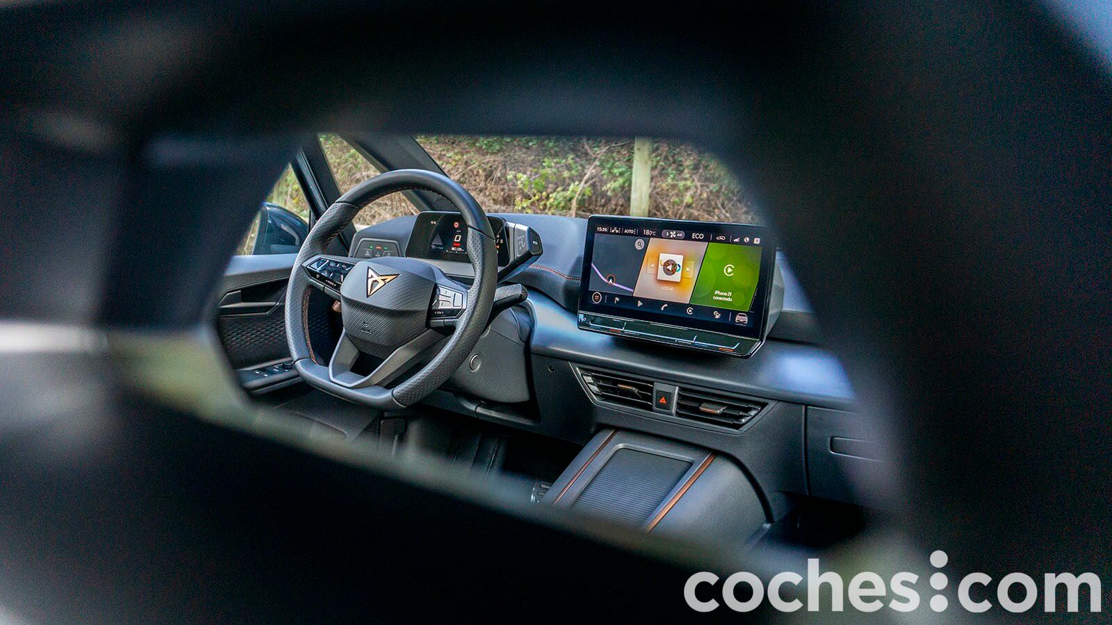 La zona central del salpicadero está copada por la pantalla táctil de 12 pulgadas, un elemento que viene de serie y que sirve para controlar todo el infoentretenimiento. Tiene una interfaz muy rápida, unos gráficos destacados y su facilidad de uso es envidiable. Tampoco se queda corta en el apartado de la conectividad, pues ofrece Apple Carplay y Android Auto; además de la tecnología Cupra Connect a través de la aplicación de la marca.