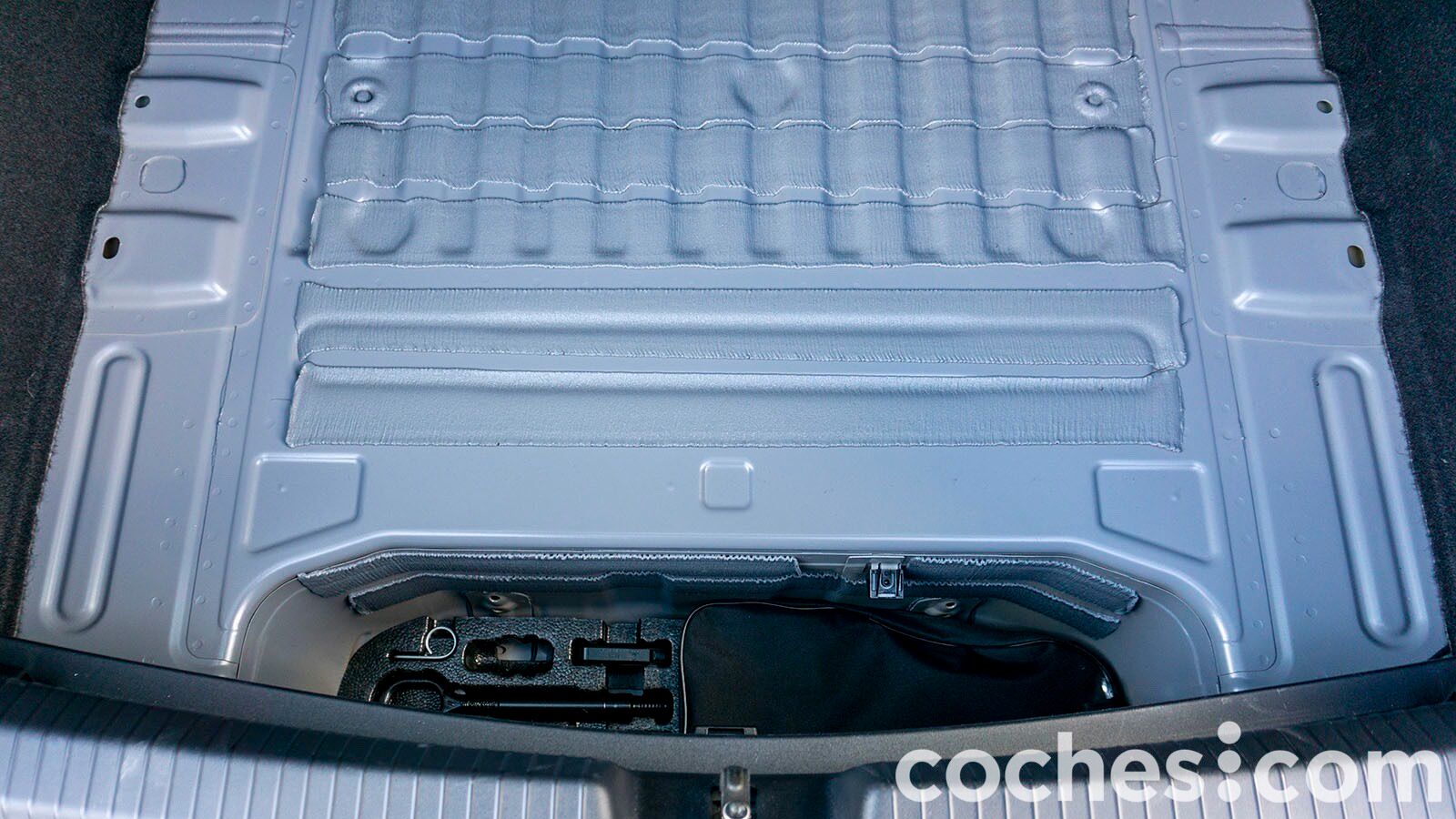 También encontramos que bajo el piso hay un pequeño hueco, aunque no es suficiente para acoger al cable de carga, solo el kit antipinchazos. Tampoco podemos esperar que haya una rueda de repuesto en este ejemplar. En el caso de que necesitemos más espacio, siempre se pueden abatir los asientos traseros en dos partes (60:40) para dejar una capacidad máxima que supera los 1.000 litros.