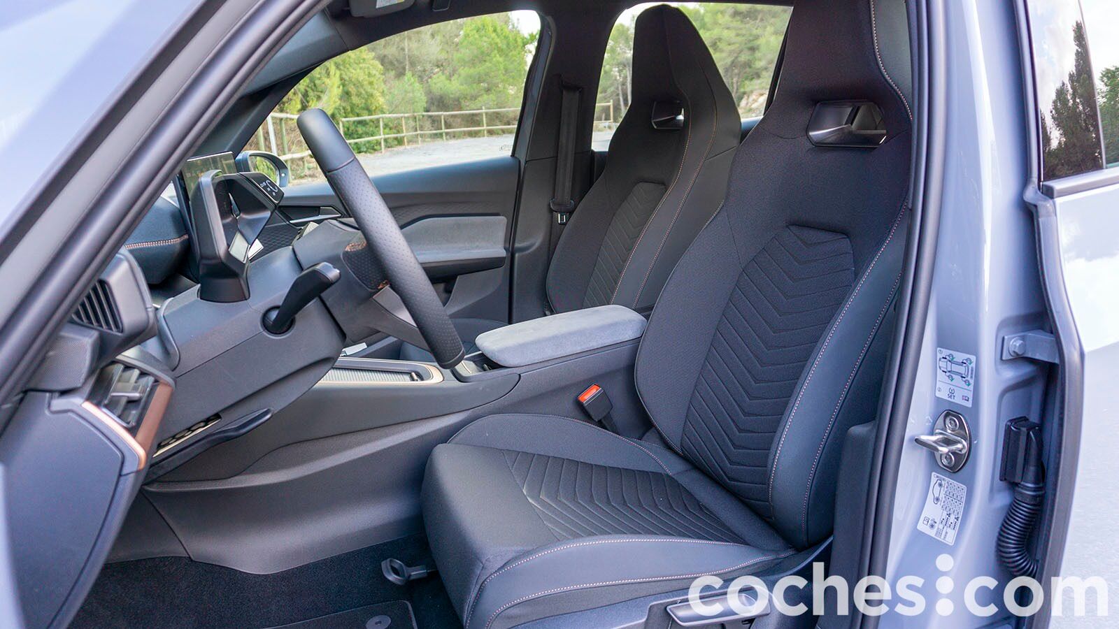 El interior del Cupra Born se puede elegir en dos tonalidades: Shark Grey y un azul similar al Petrol Blue, aunque algo más oscuro. Como ya es habitual, las costuras van en Copper haciendo contraste. Son de serie los asientos deportivos, que a pesar de tener diseño de baquet, encuentran el equilibrio justo entre deportividad y comodidad. En nuestra unidad cuentan con reglajes manuales, pero opcionalmente se pueden montar los eléctricos, calefactados y con función masaje.