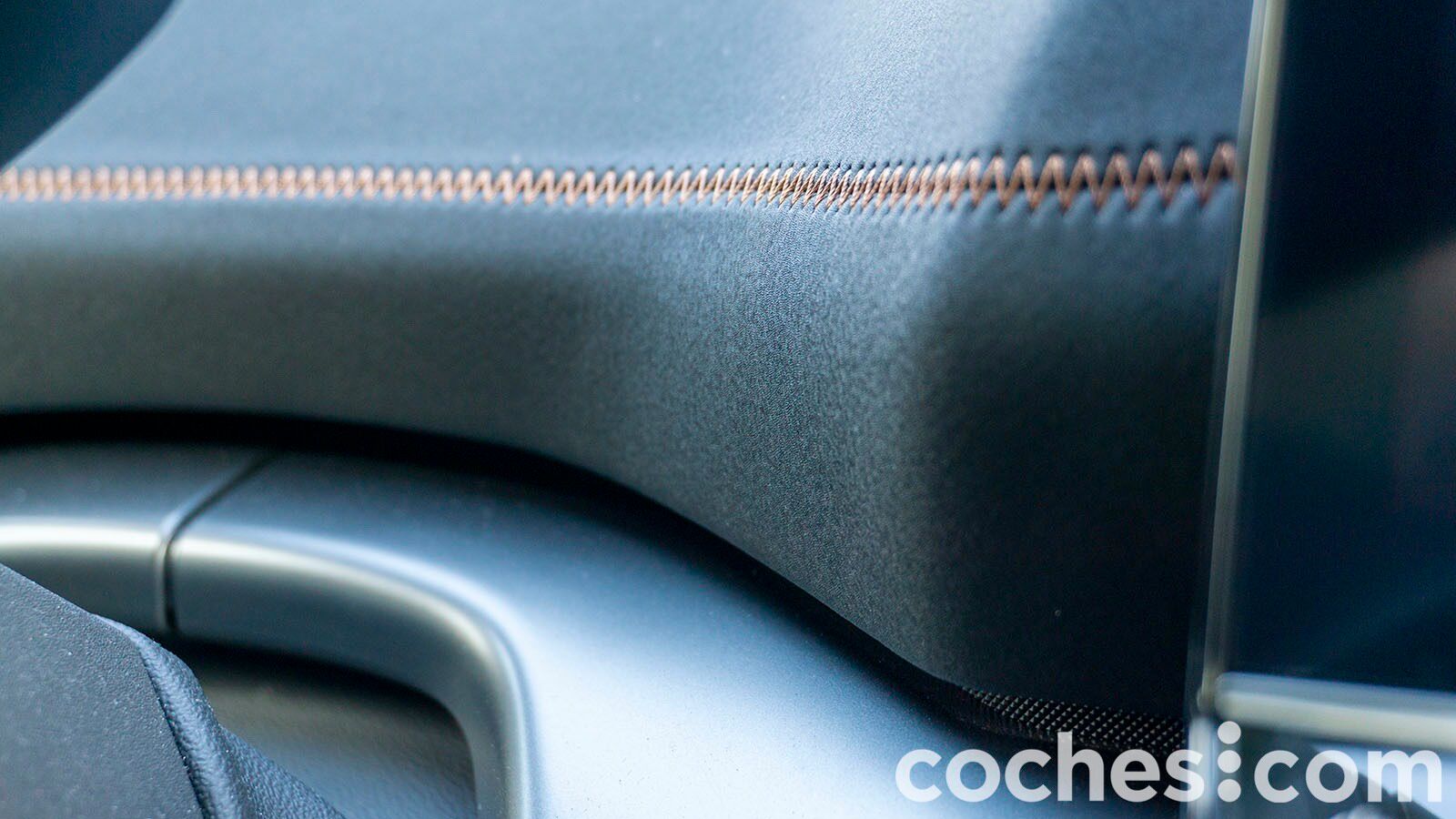 Aunque si hay algo que me ha llamado la atención del habitáculo del Cupra Born ha sido su calidad notable y el cuidado por sus materiales. Ya adelantamos que había novedades en este apartado y la firma introduce detalles sostenibles como el tejido Seaqual en la parte central de los asientos, que está hecho a base de plásticos marinos reciclados. También es de un tacto sobresaliente la tela estilo neopreno de algunas superficies o el tejido Dinámica (parecido al Alcántara) con patrón de triángulos hechos por láser.