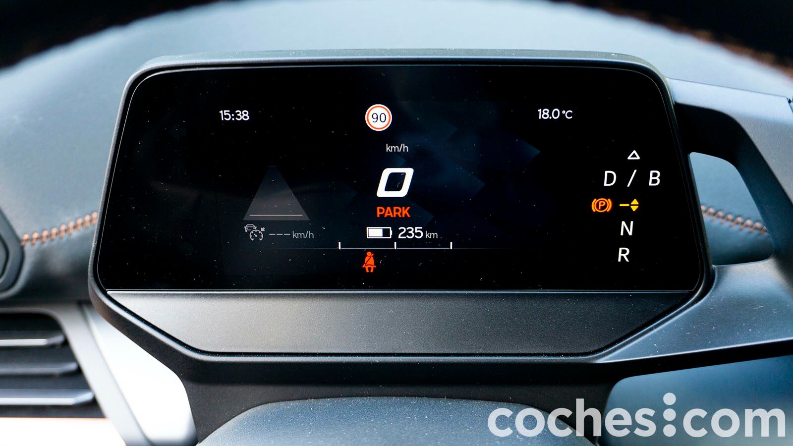 En el interior del Cupra Born hay una premisa principal: todo gira alrededor del conductor. El puesto de mando se nota bien resuelto y cuenta con un volante multifunción con botones táctiles que sirven para controlar varias funciones. A través de él se puede ver una instrumentación digitalde 5,3 pulgadas con unos gráficos muy buenos, pero que no tiene el tamaño ni las posibilidades de personalización que otros rivales. Justo a su derecha, en el mismo marco, está el selector de marcha. Opcionalmente también puede montar el Head-Up Display con realidad aumentada.