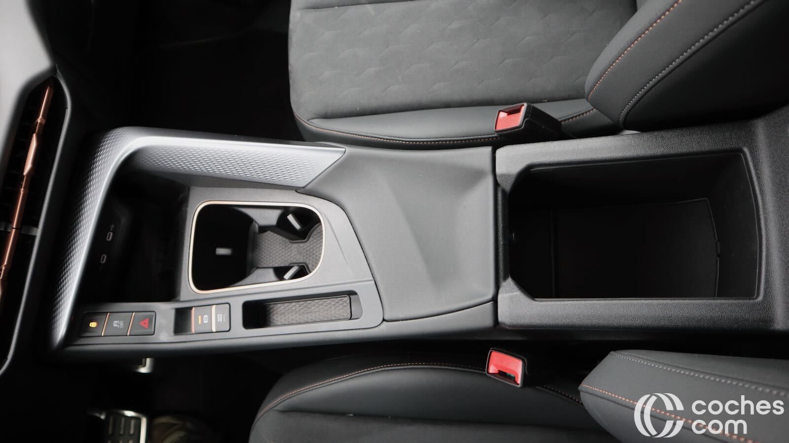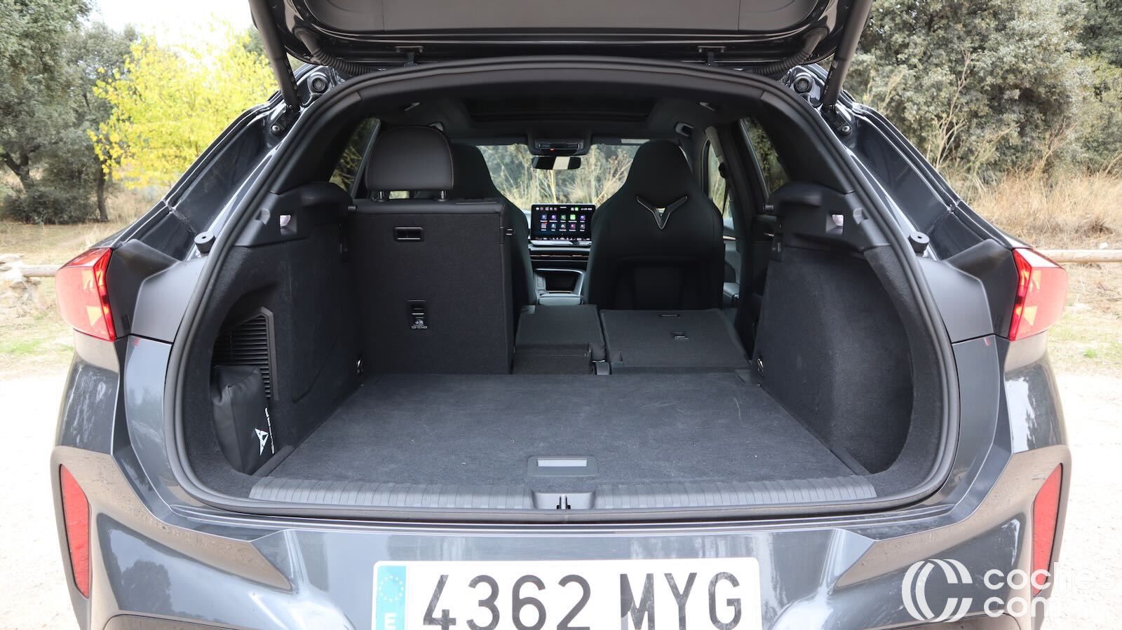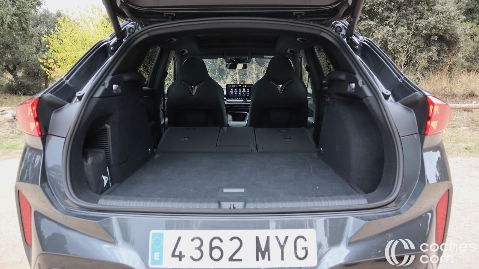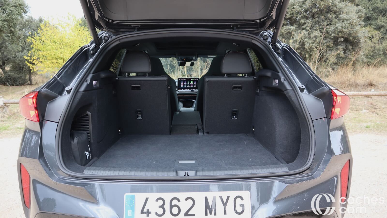 El borde de carga está a 780 mm de altura, así que no será tan fácil cargarlo como modelos rivales más bajos. Hay opción de apertura eléctrica y manos libres para el portón trasero y no faltan tomas de 12V y 230V, que nunca vienen mal. Un detalle que tenía nuestra unidad es un gancho de remolque retráctil, algo que conocíamos de Skoda pero nunca habíamos visto en un Cupra.