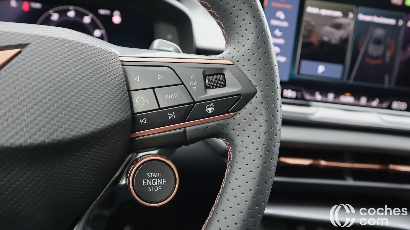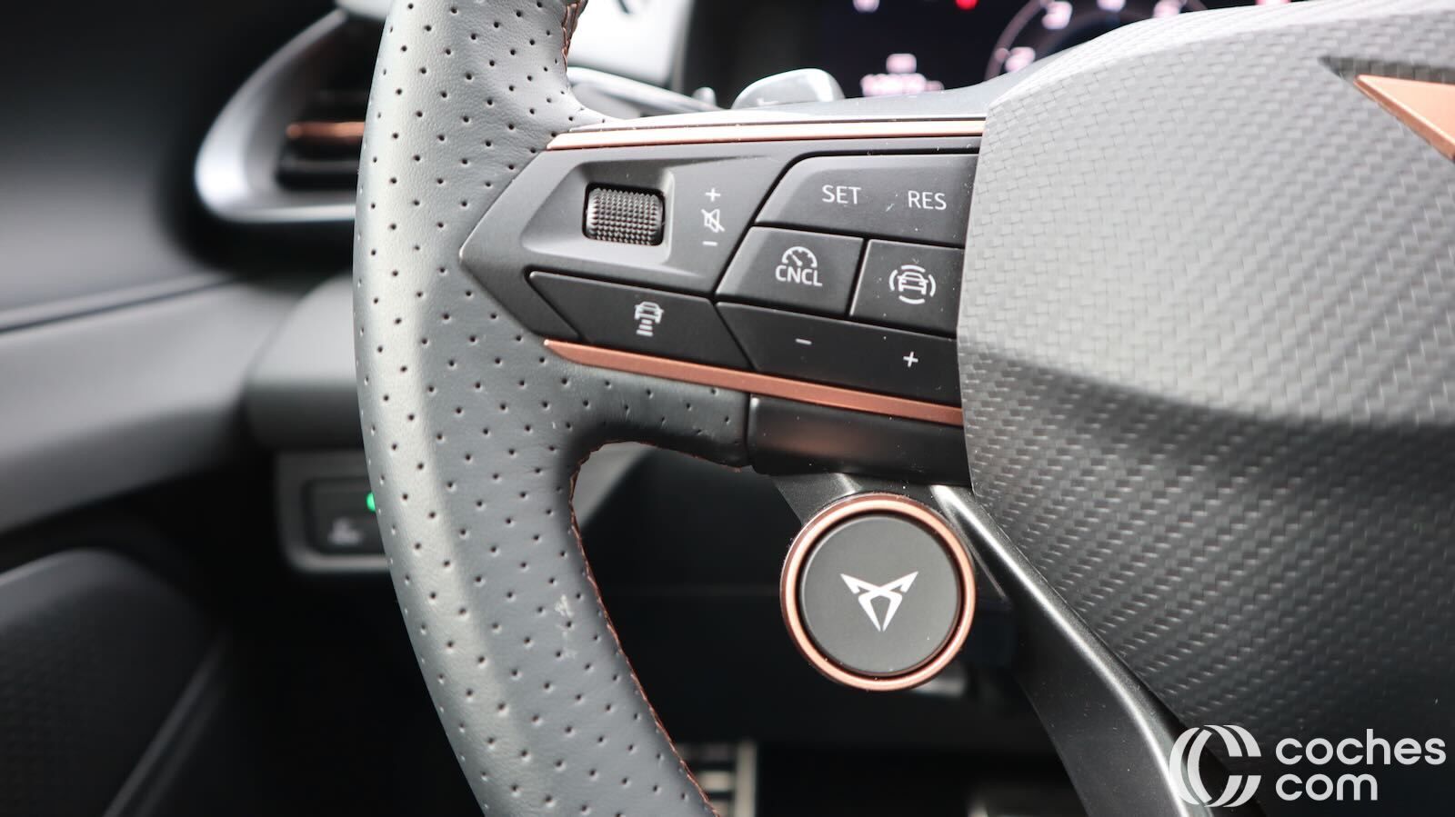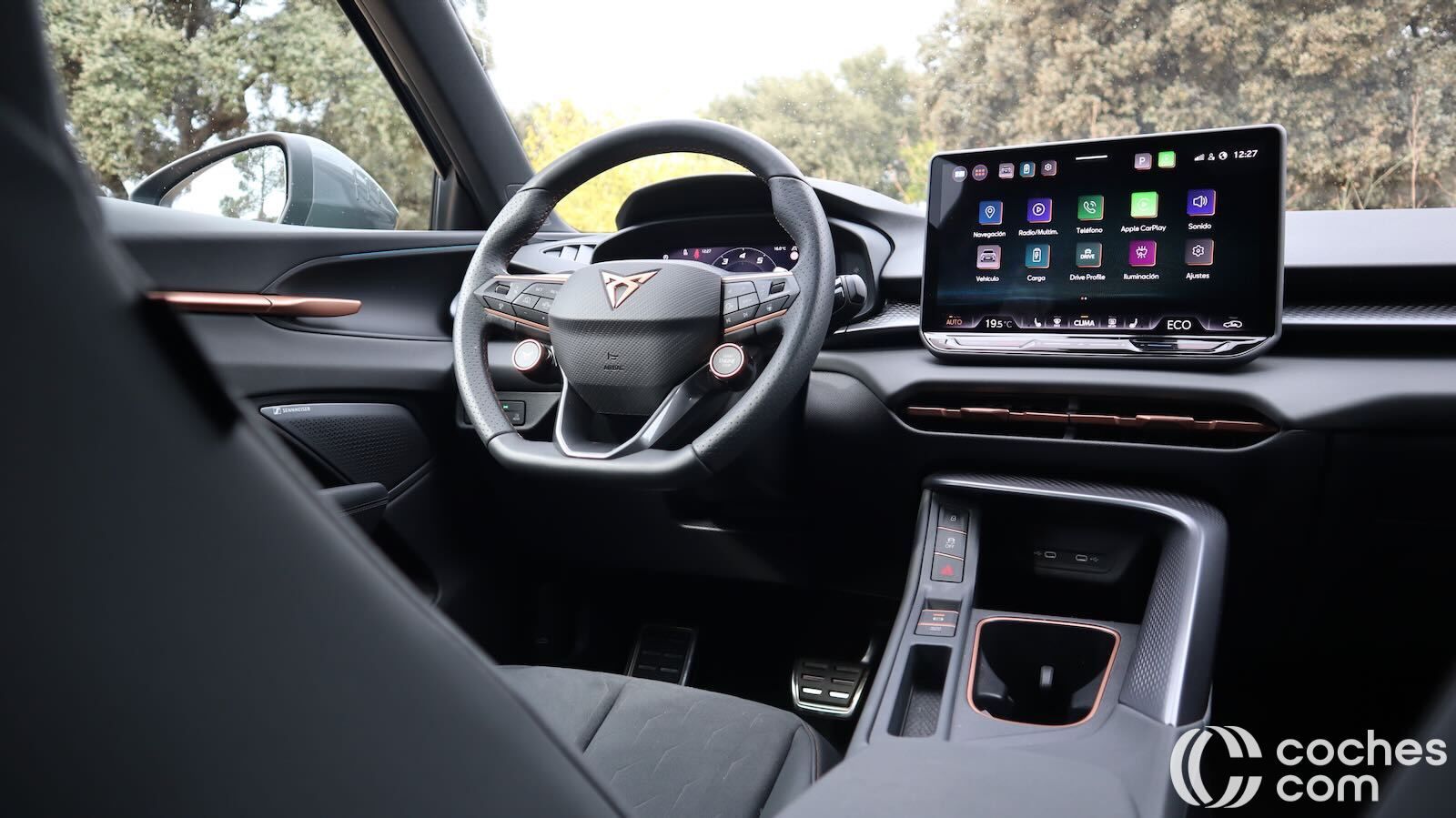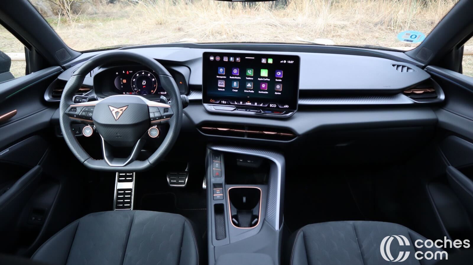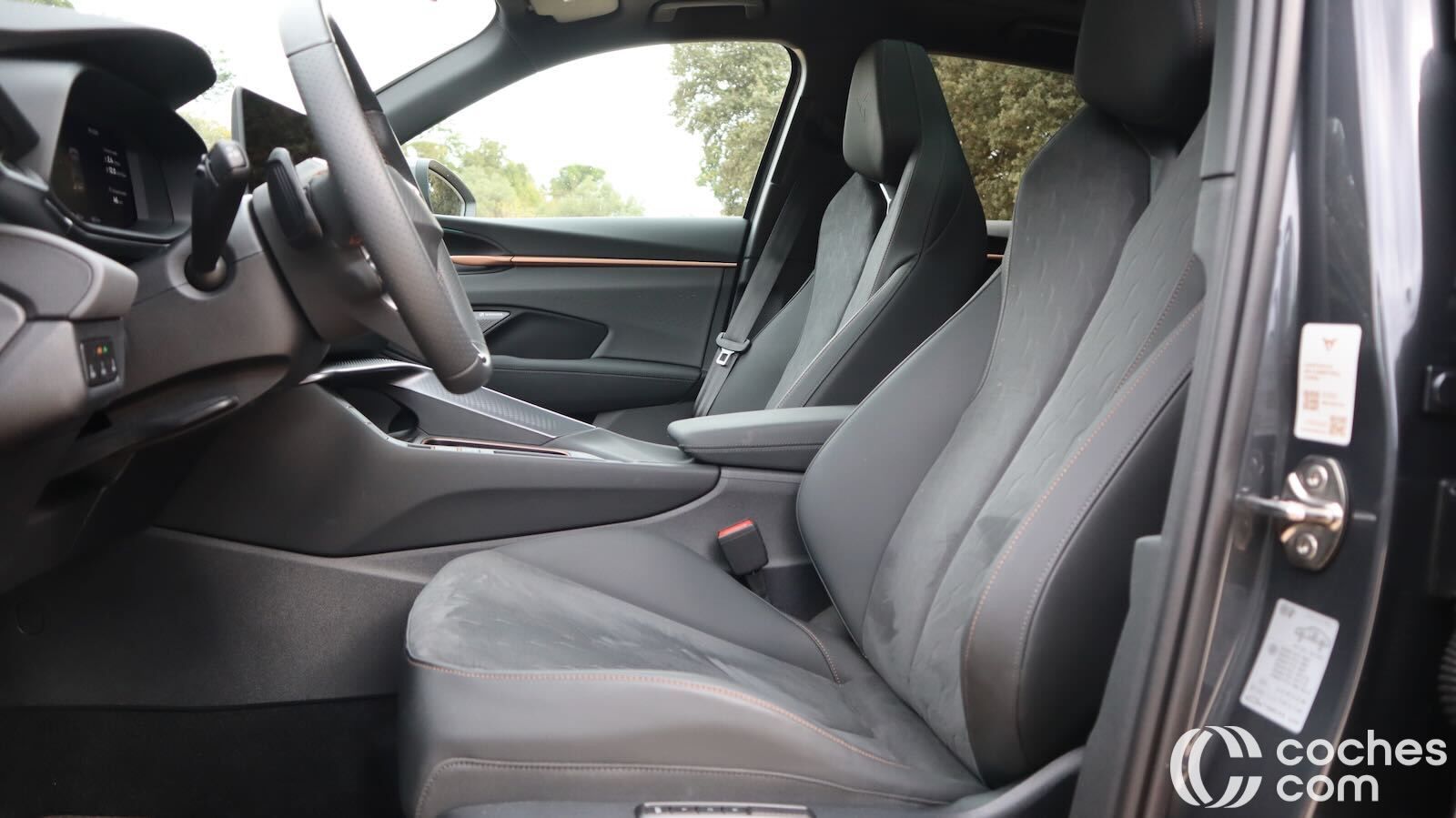 El volante multifunción, de tacto deportivo, integra botones satélite y selectores físicos para modos y arranque, sin concesiones a los mandos hápticos. El puesto de conducción es elevado respecto al Formentor. Eso sí, tiene buena ergonomía, con asientos regulables eléctricamente (además de calefactados y con función memoria), además de cinturones regulables en altura.