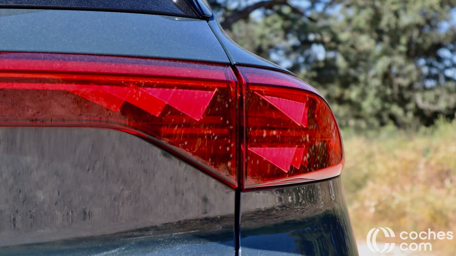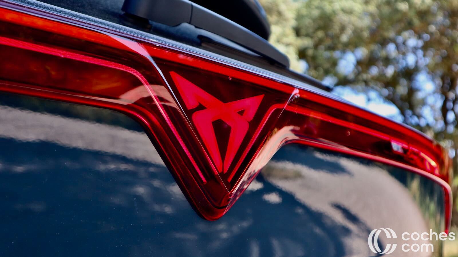 Ya en la zaga hay dos elementos que definen el portón. Por un lado el logo de CUPRA y por encima el logo de la firma iluminado y unido a una tira que une las ópticas, que siguen el juego de los triángulos. En la parte alta tenemos un pequeño alerón de techo y en la más baja un paragolpes con zonas negras y grises, como queriendo aligerar la vista de chapa.