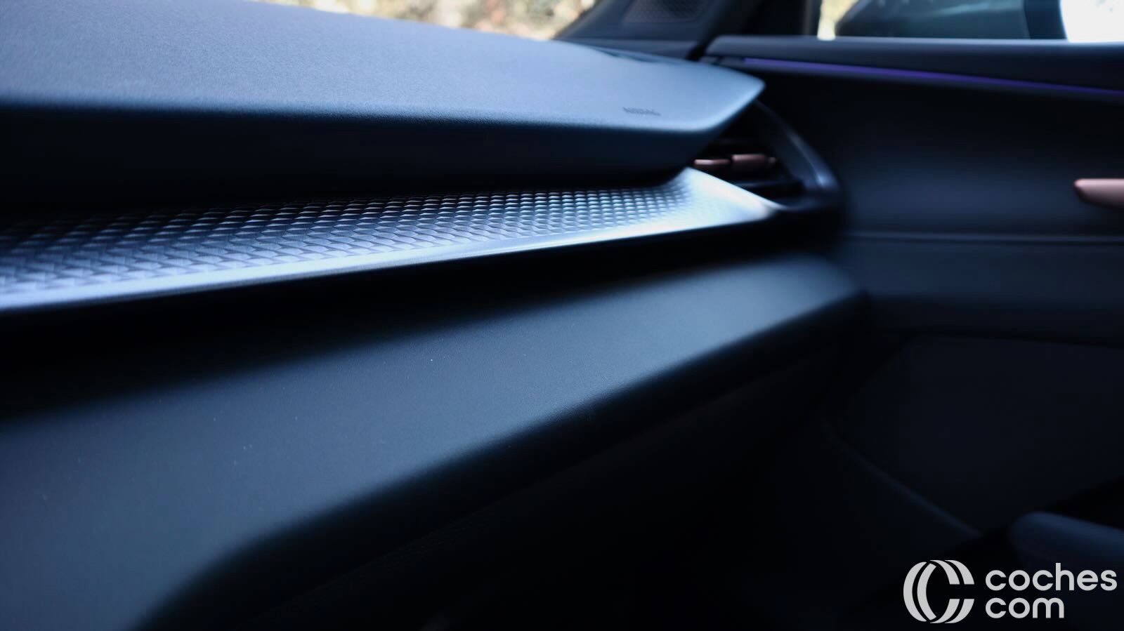 No faltan tonos en cobre en los aireadores o en las puertas, así como una lira lumínica que recorre el salpicadero que puedes cambiar de color y que además tiene función de seguridad, advirtiendo si hay vehículos en el punto ciego.