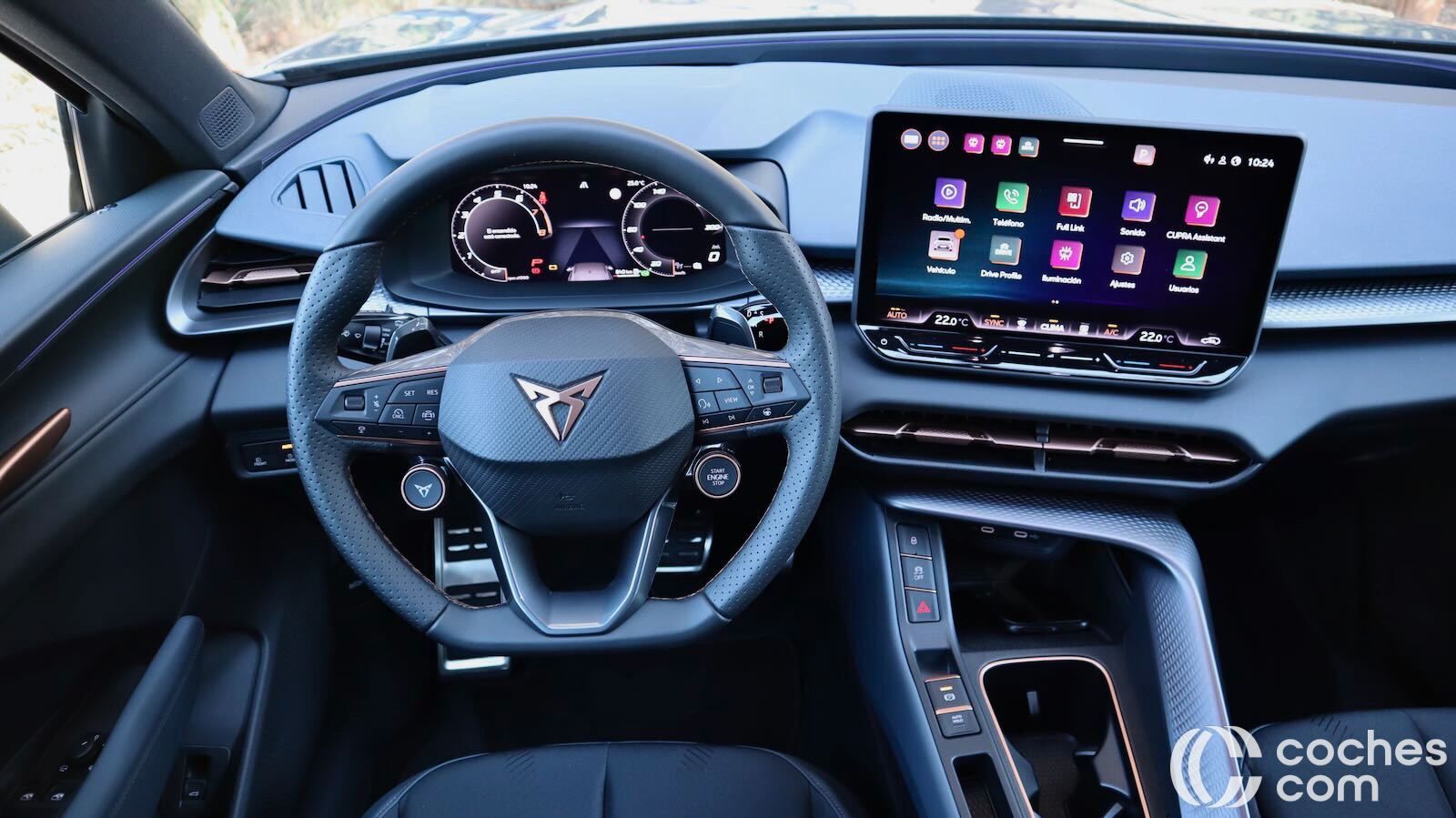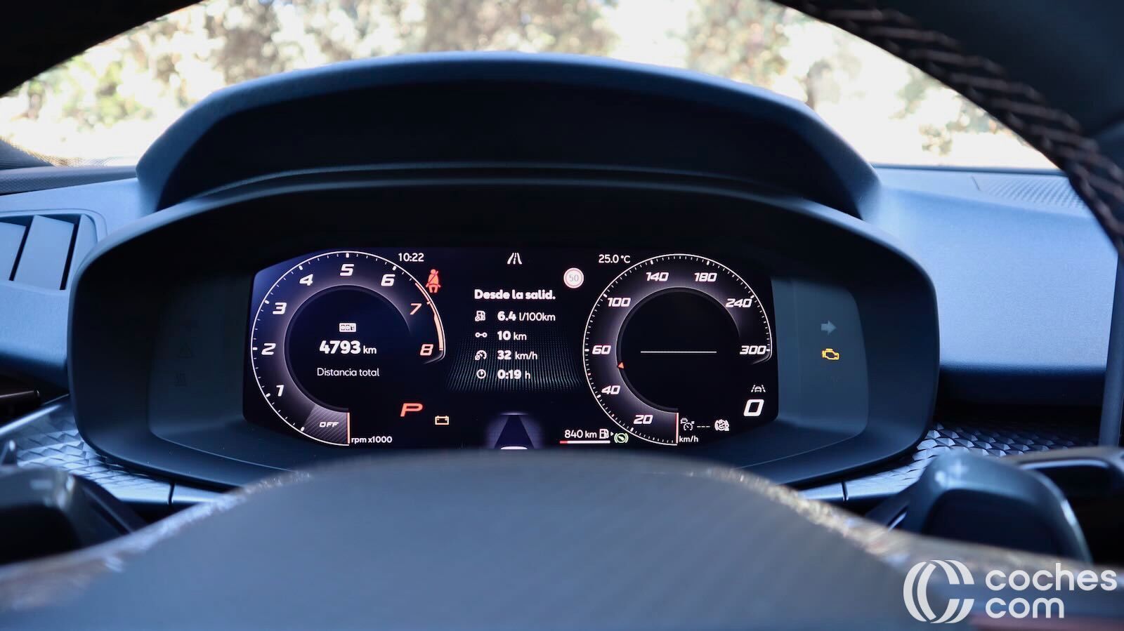 La posición de conducción es más erguida que en un Formentor, pero sin una sensación de ir muy elevado. Tenemos unos asientos con formas envolventes y una tapicería de que convence, pero puedes elegir otras dos, una de ellas de piel, así como reglajes eléctricos o calefacción. Los de serie me han parecido más que buenos.