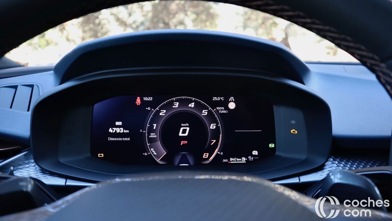 Tras él vemos el cuadro de instrumentos digital, de 10,25 pulgadas, con varios modos para visualizar la información y con información muy completa de viaje y del estado del coche.