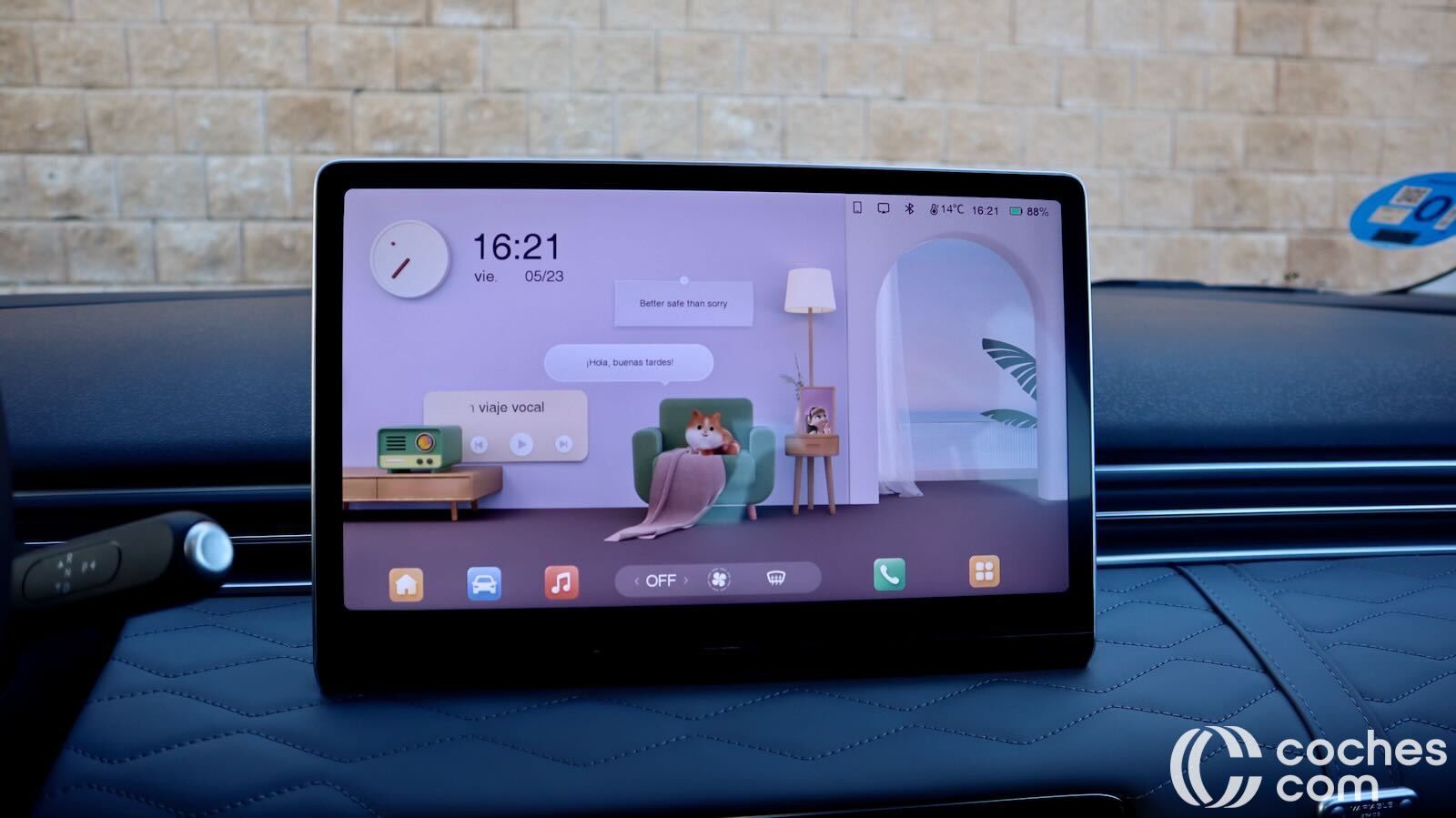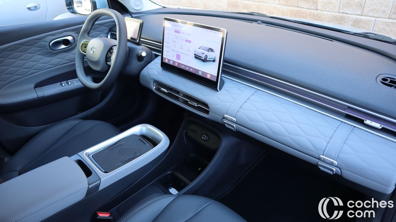 El salpicadero lo preside una pantalla de 12 pulgadas para el infoentretenimiento, con menús bien estructurados pero algo largos y con letras pequeñas para controlar mientras se conduce. Es compatible con Android Auto y Apple CarPlay inalámbrico, pero se precisa un adaptador que incluye la marca. Buenas cámaras con vista cenital y 3D y un funcionamiento fluido.