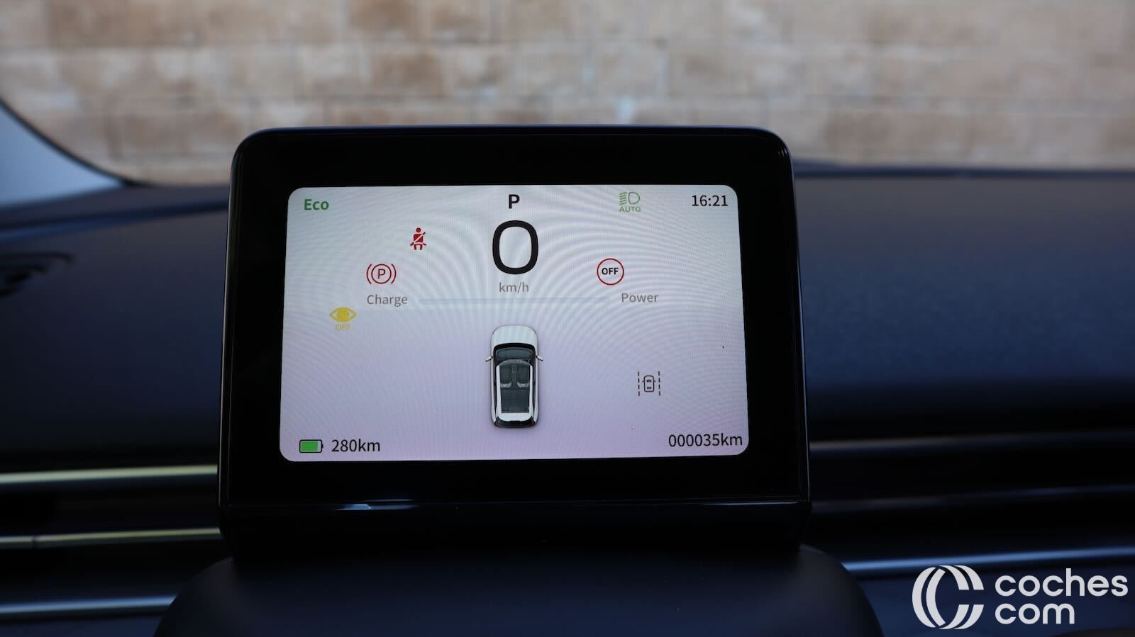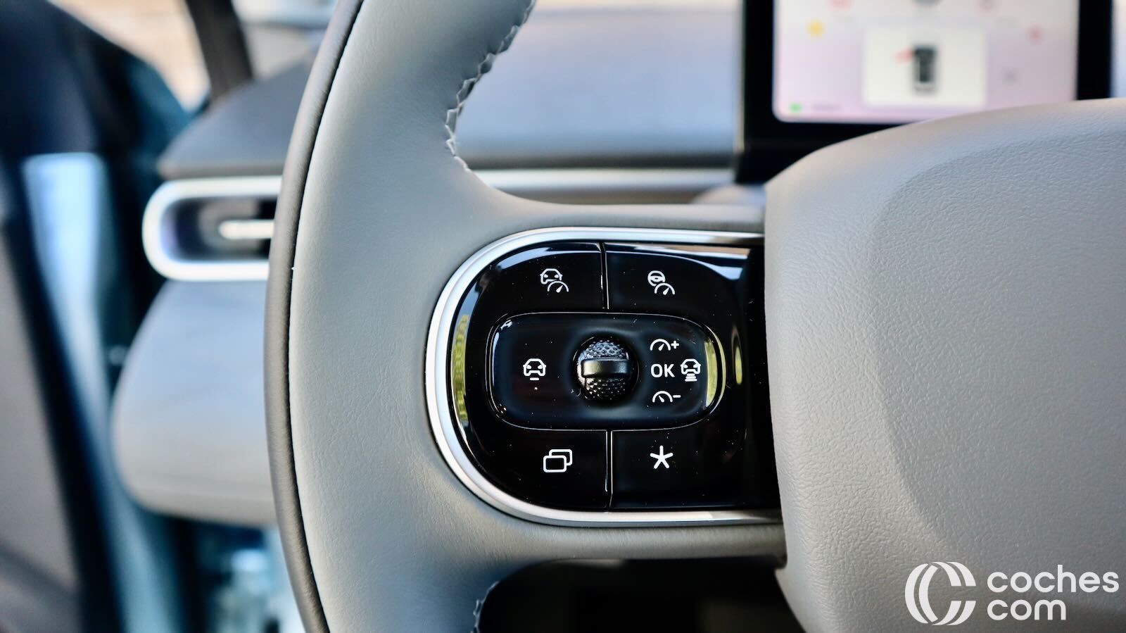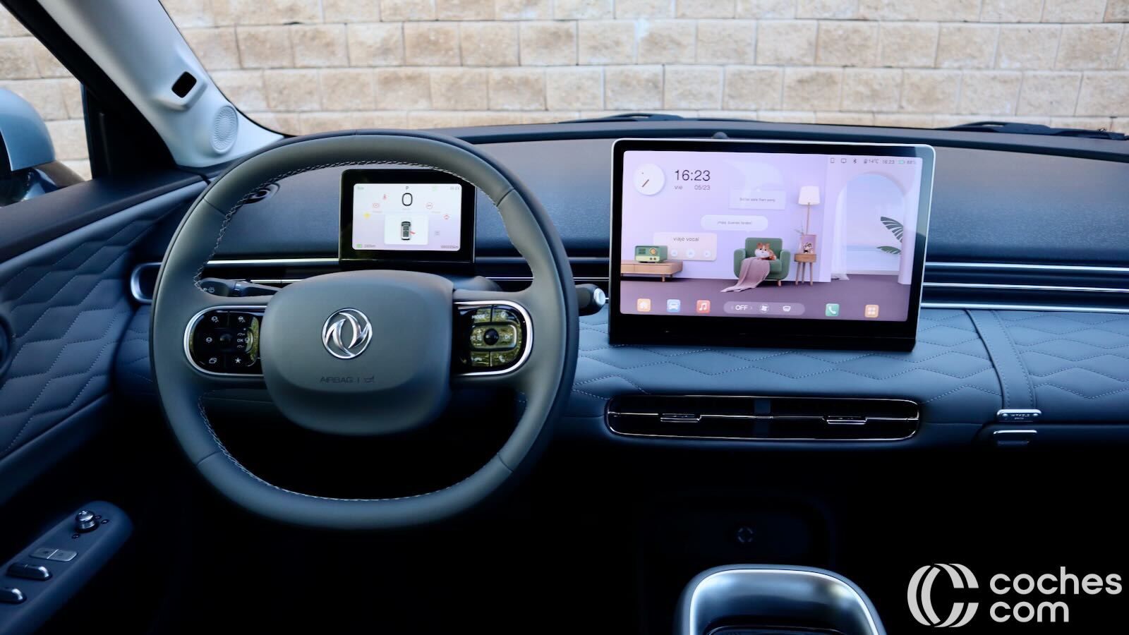 Contamos además con un cuadro de instrumentos de 5 pulgadas para ver la información básica durante la conducción y sí, muy pocos botones. La gran mayoría en el volante, más ovalado que redondo. Más allá de eso, controlas elevalunas, cierre y espejos desde la puerta (por cierto, el gesto para subir ventanillas en el mando es al revés de lo lógico, como en Jaecoo), y el botón de las luces de emergencia se ha tenido que ubicar en el techo.