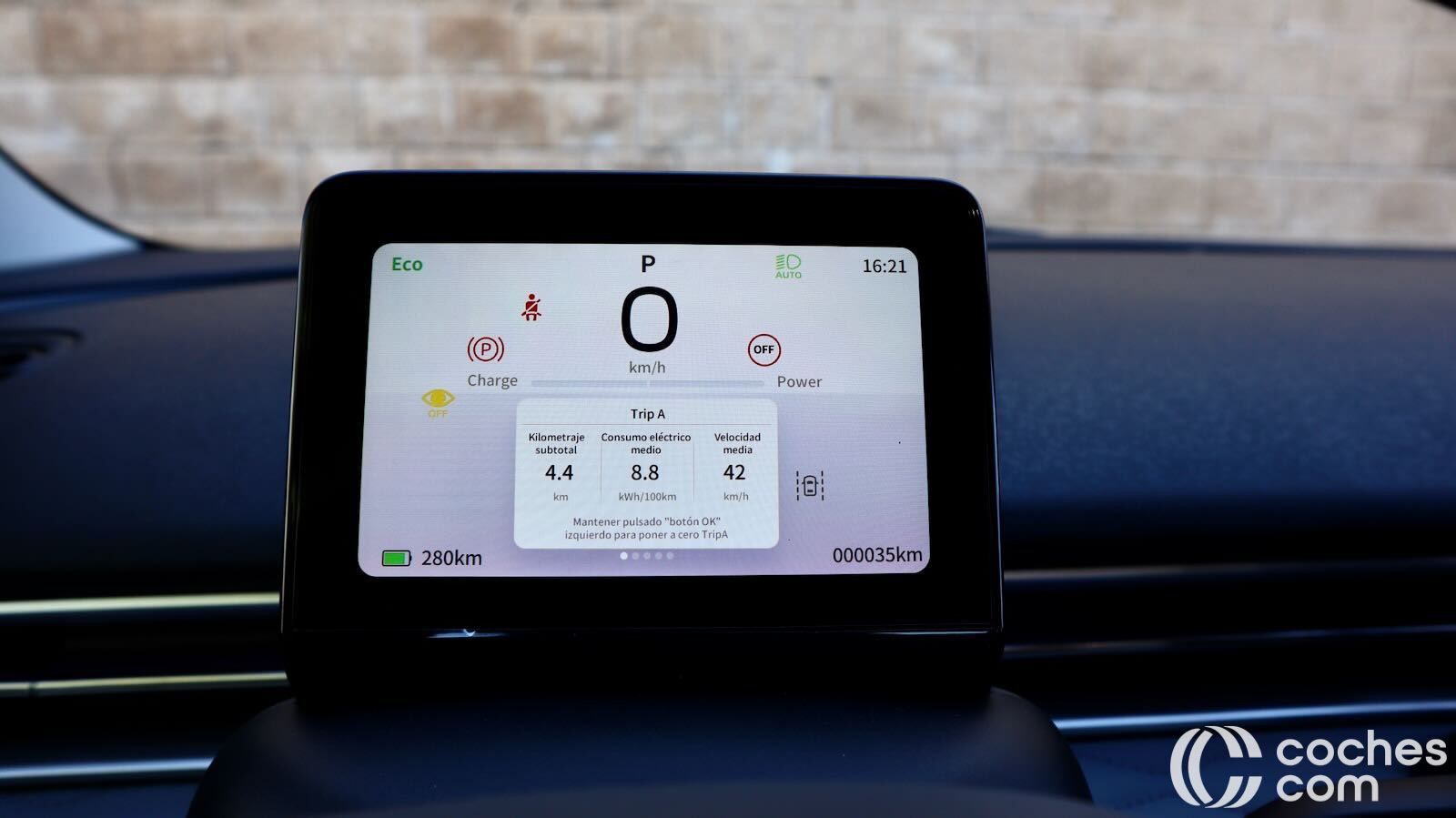 Y claro, tendríamos que hablar de consumos. Me ha sorprendido mucho. Homologa 15,6 kWh/100 pero en tráfico urbano y periurbano me he movido en el entorno de los 12 kWh. Y en pequeños trayectos en ciudad he llegado a ver cifras por debajo de 10 kWh. Obviamente, en un viaje por autovía el gasto sube, pero podríamos atrevernos contado que tendrías que parar cada 240 km aproximadamente.