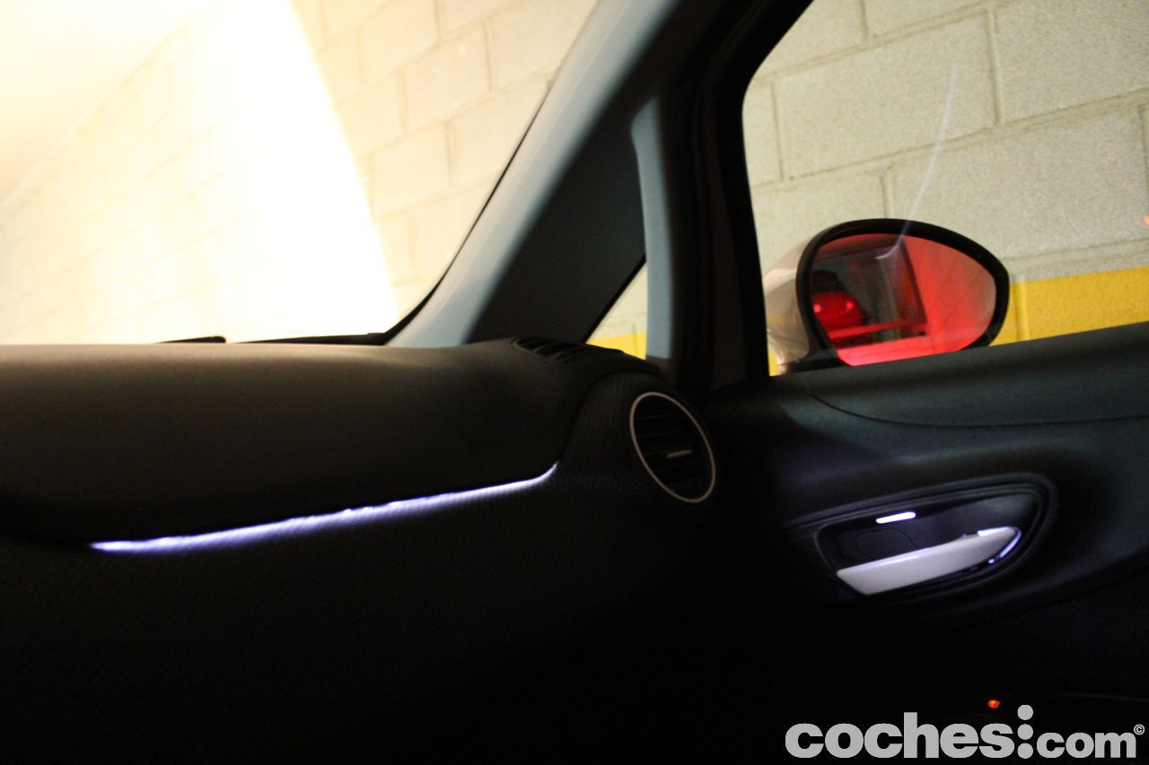 Una cosa que me gustó fueron los detalles blancos en contraste con el negro que domina todo el interior. De noche resaltan aún más, ya que unos pequeños LED blancos se encargan de iluminar tiradores de las puertas, los pedales y la guantera.