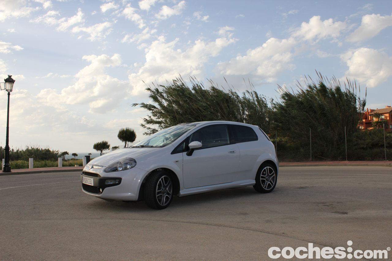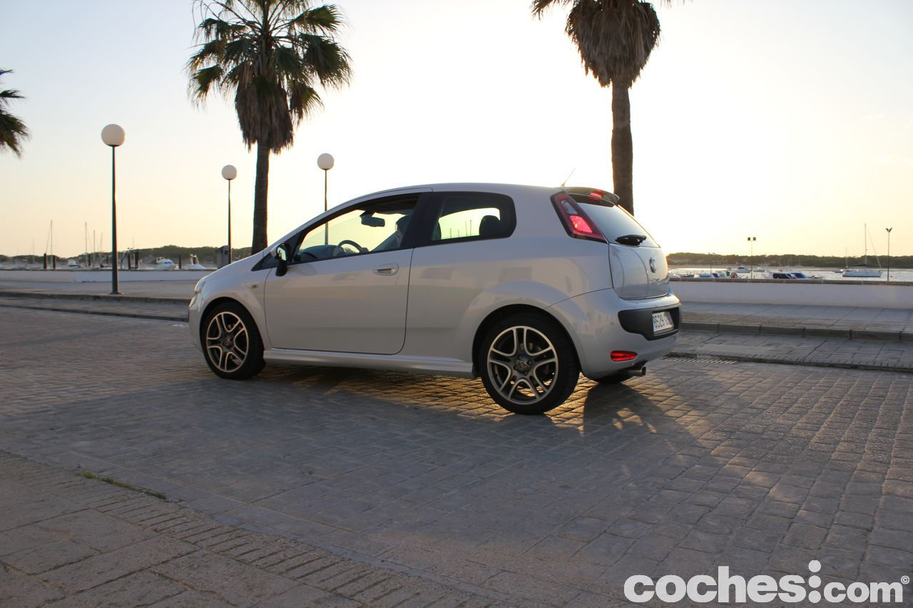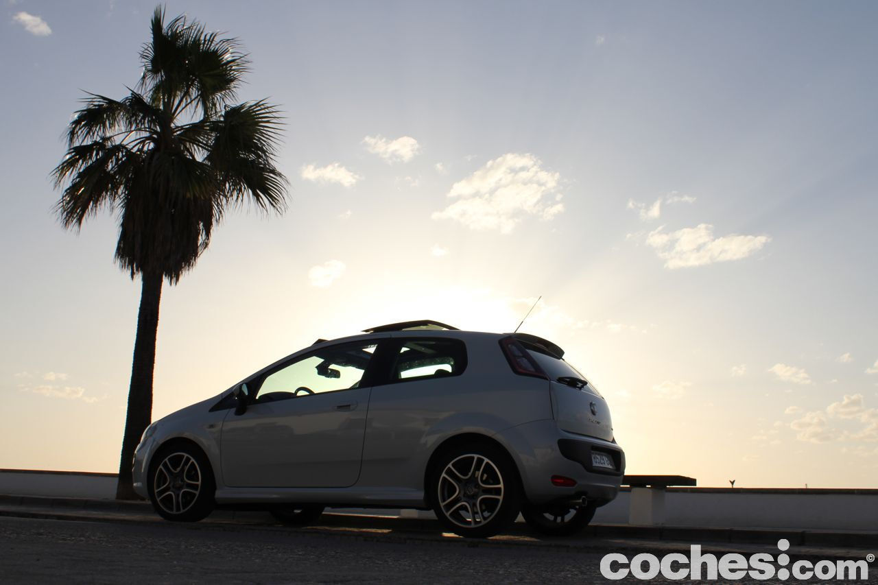 No hay diferencia alguna (¡ni siquiera ese hermoso blanco perlado!) con el Punto Evo Multiair de 135 CV Combina discreción con la deportividad (sin llegar al macarrismo) que le proporcionan sus faldones, faros tintados, el tubo de escape cromado y el pequeño spoiler trasero sobre el portón del maletero.