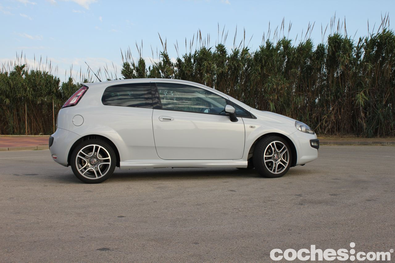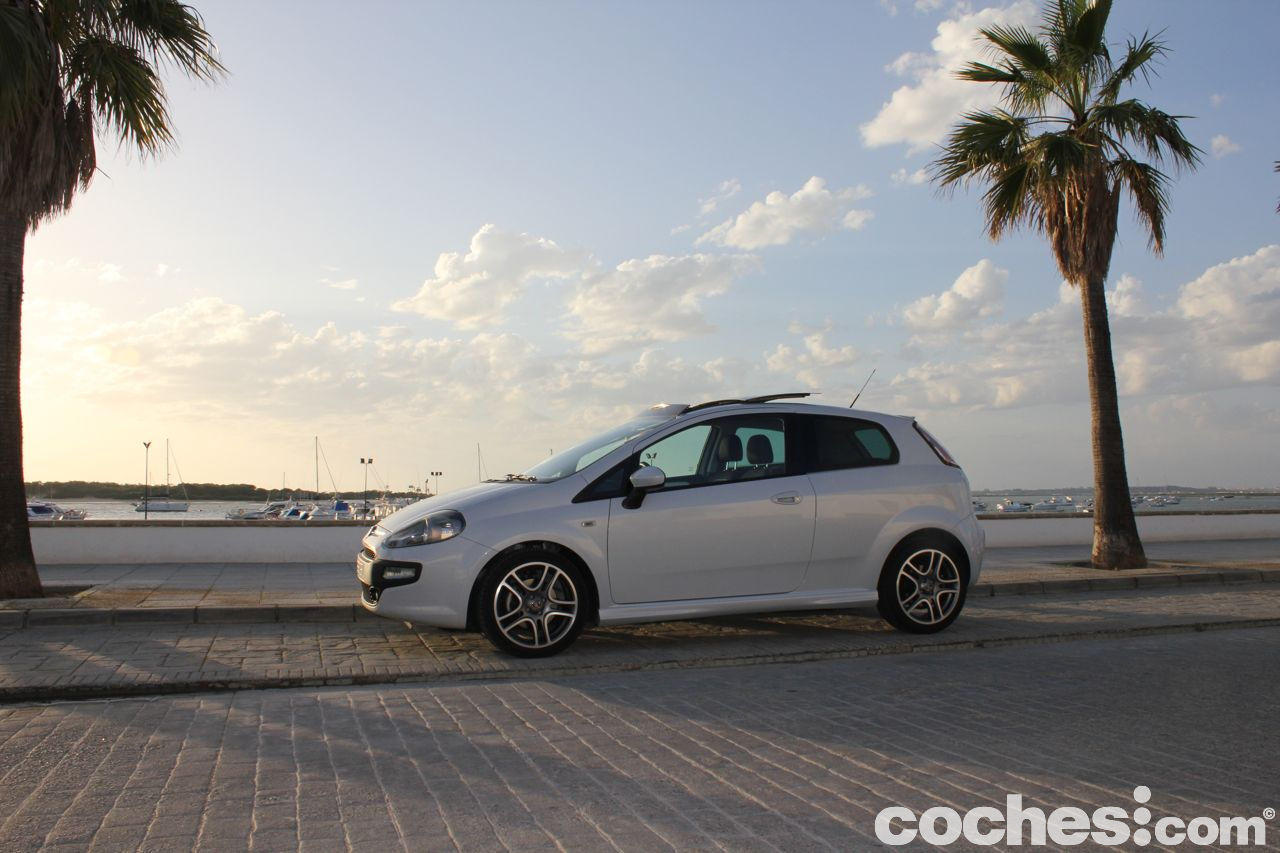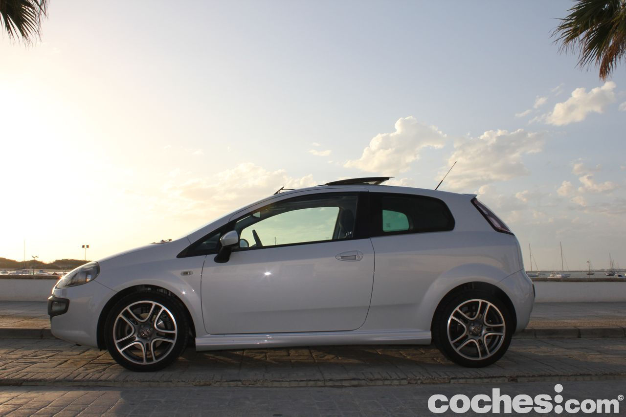 No hay diferencia alguna (¡ni siquiera ese hermoso blanco perlado!) con el Punto Evo Multiair de 135 CV Combina discreción con la deportividad (sin llegar al macarrismo) que le proporcionan sus faldones, faros tintados, el tubo de escape cromado y el pequeño spoiler trasero sobre el portón del maletero.