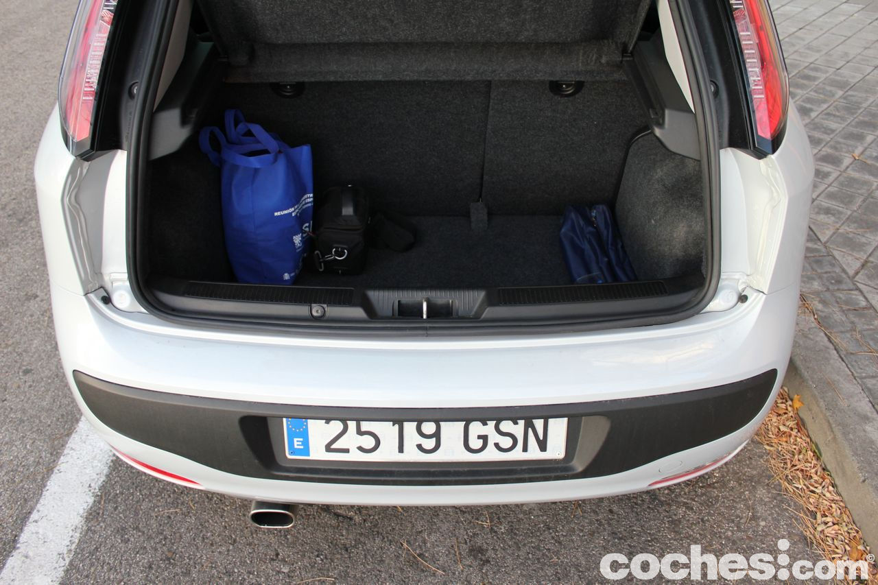 El maletero del Punto es muy aprovechable. Tiene 275 litros de capacidad, por lo que es uno de los mayores en el segmento de los utilitarios. Toda esa capacidad la gana a costa de no tener rueda de repuesto, sino un kit antipinchazos. Así, Fiat ha conseguido un maletero muy profundo, si bien el borde crea un escalón bastante pornunciado que puede resultar incómodo a la hora de vaciarlo. Los asientos tarseros son abatibles en la clásica configuración 60/40.
