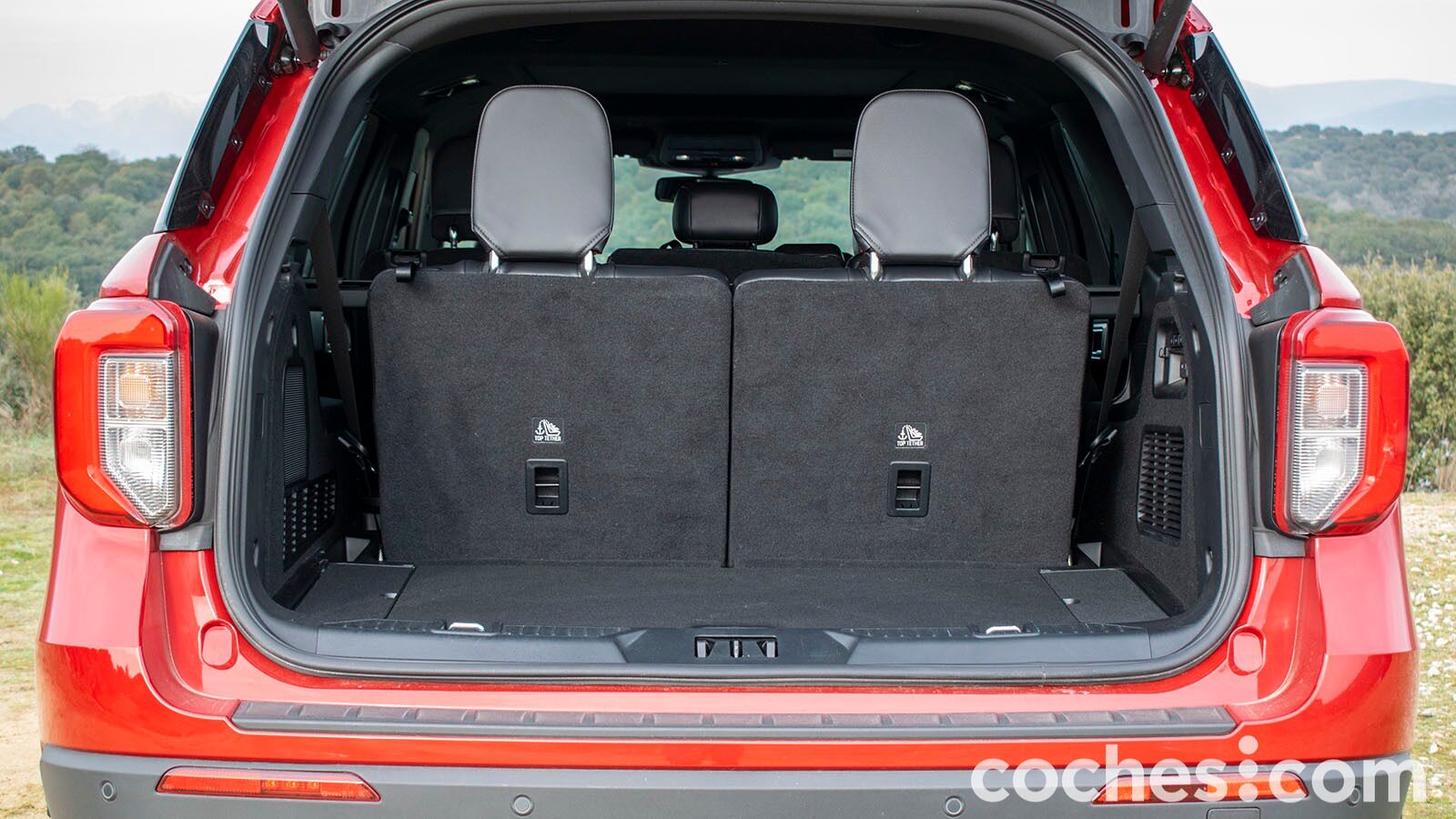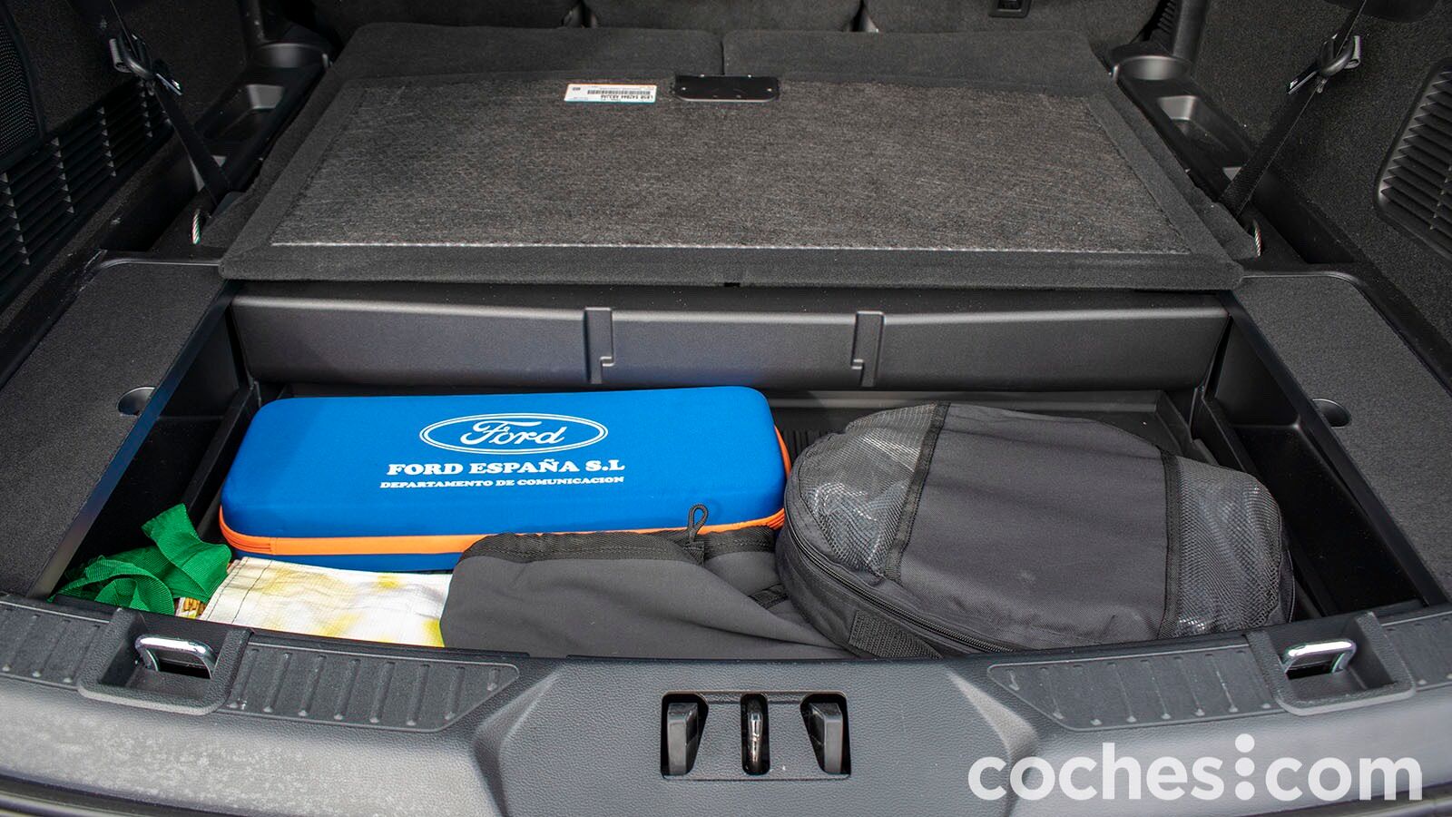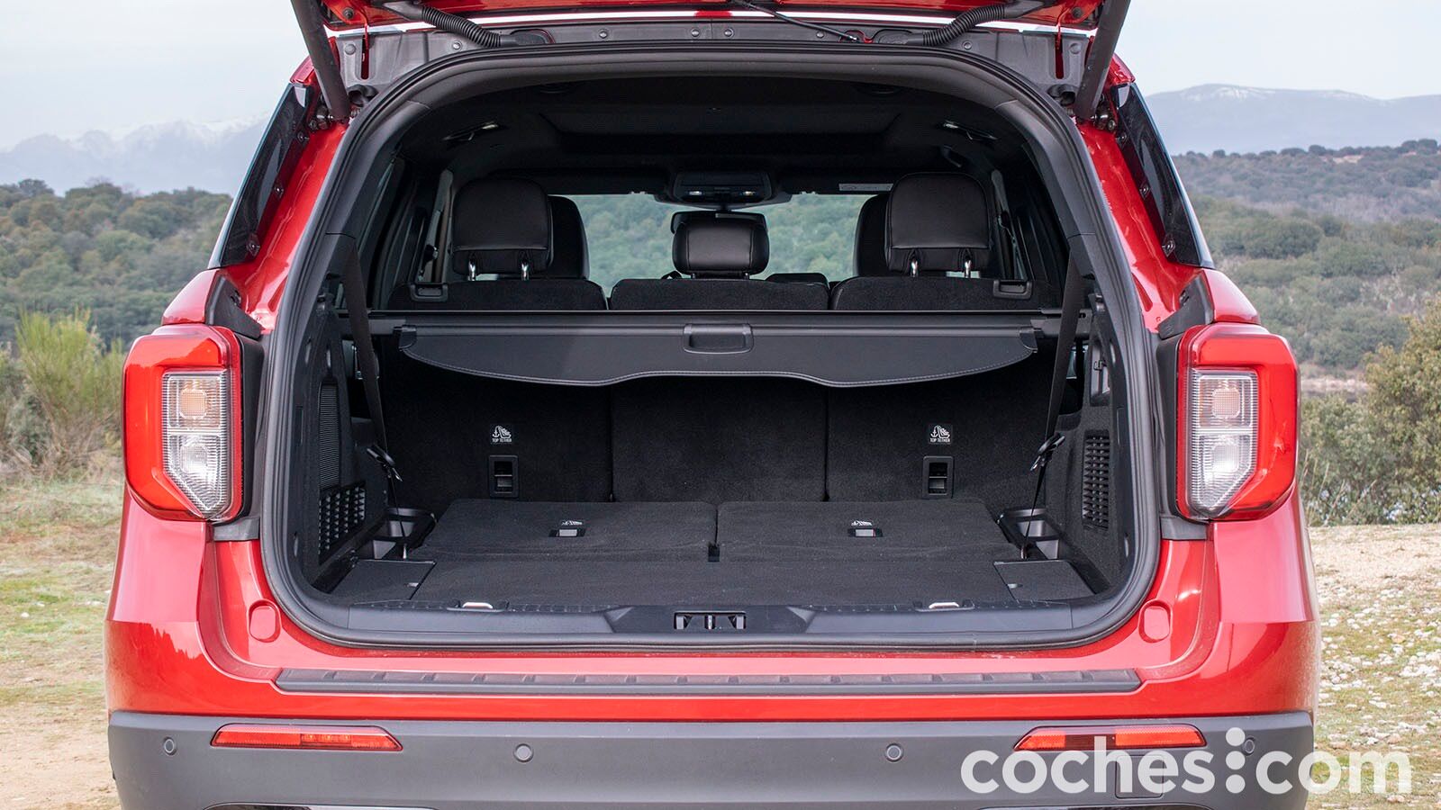 El maletero es uno de los puntos fuertes del Ford Explorer. Con las siete plazas hábiles tiene 240 litros, que ya son suficientes para muchos trayectos. Si sólo viajan cinco personas y se abate la tercera fila queda un maletero de 635 litros, muy aprovechable gracias a unas formas rectas. Además, contamos con un doble fondo en el que se pueden dejar objetos como su cable de carga.