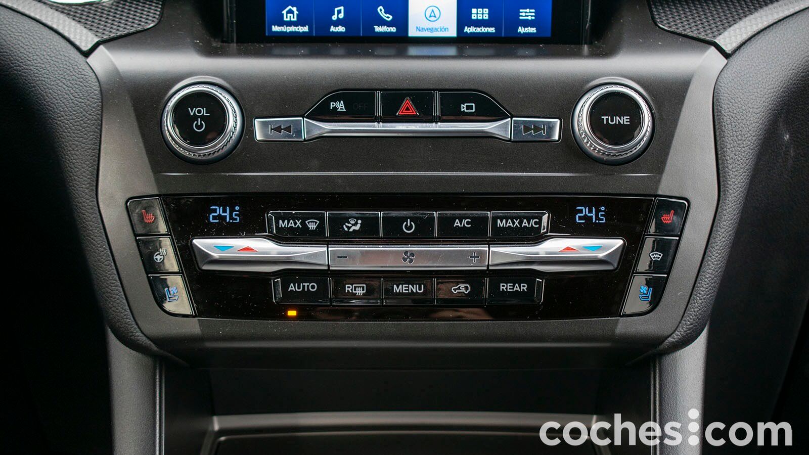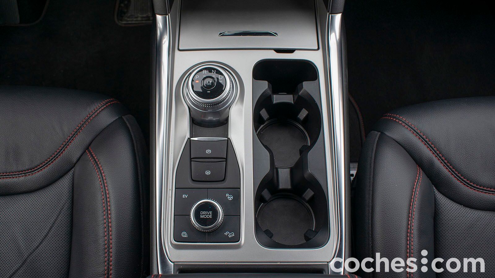 Dejando a un lado ese tema, el Explorer cambia notablemente en función del modo de conducción que empleemos. Se puede elegir entre Eco, Normal, Sport, Pista, Resbaladizo, Arena/Nieve o el modo Remolque; modificando la respuesta del motor, de la transmisión o de la dirección. Y además, también hay un selector para cambiar el sistema de propulsión que utiliza el híbrido enchufable. Permite elegir entre EV Auto, EV Now, EV Later y EV Charge; siendo el primero la combinación, el segundo el modo eléctrico, el tercero para reservar batería y el último para cargar la batería con el motor de gasolina.