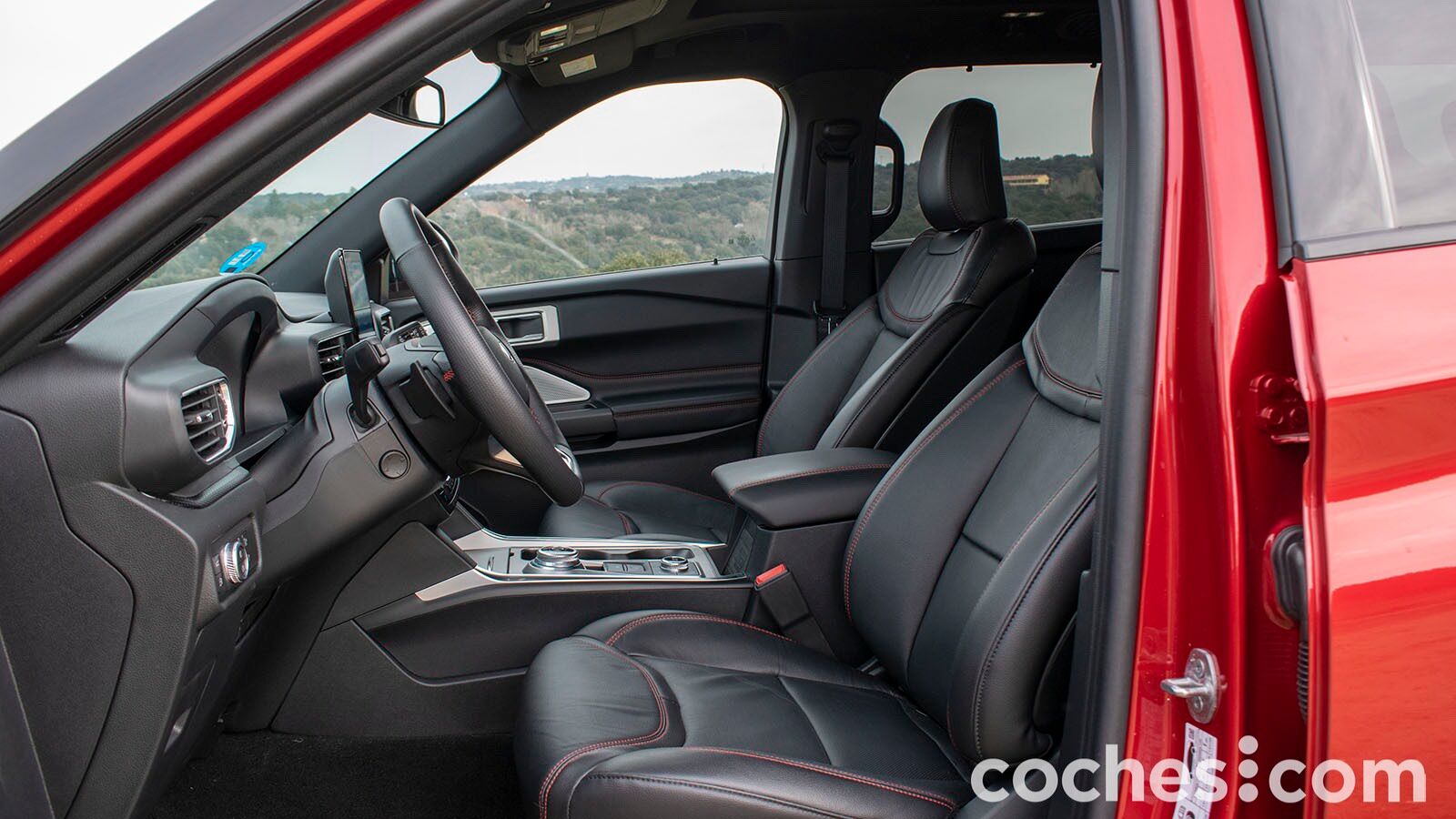 Lo mismo nos ocurre con la calidad del Ford Explorer. Es muy elevada para tratarse de un modelo que proviene de una marca generalista, pero está en un segmento en el que los Audi Q7, BMW X5 o Mercedes GLE le dejarán atrás. Destaca para bien por elementos como la tapicería de cuero con costuras en rojo, plásticos blandos en casi todas las superficies o molduras plásticas con símil de fibra de carbono.