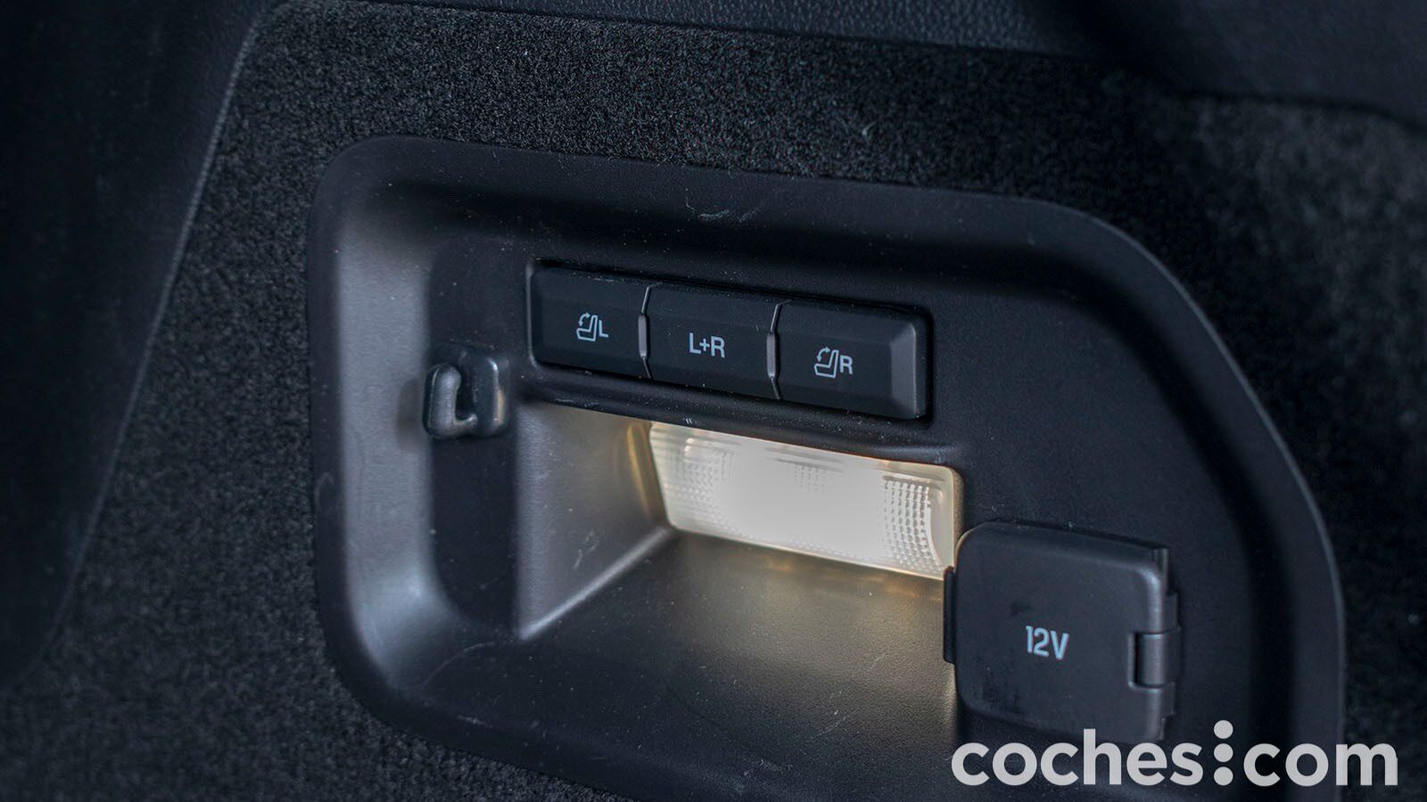 Desde esta misma superficie es puede abatir los asientos de forma eléctrica, mientras que también cuenta con un portón de accionamiento eléctrico. No falta la iluminación o los ganchos para dividir la carga. Y en caso de que necesitemos más espacio siempre se puede abatir la segunda fila de asientos en tres partes (40:20:40) para dejarnos una superficie plana de hasta 2.274 litros y más de dos metros de largo.