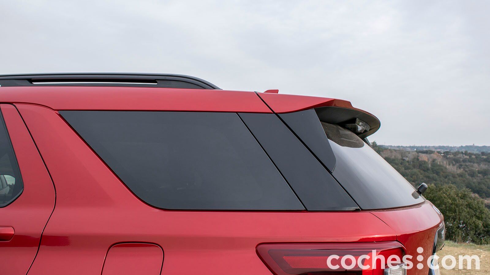 La zaga es fácilmente reconocible también por la forma del pilar D y por el spoiler de techo, que da paso a una luneta bastante vertical. La zona intermedia recibe unos pilotos traseros LED prácticamente metidos en el lateral del vehículo y una moldura en negro con el nombre del modelo en la parte central del portón. La parte baja del paragolpes va en plástico negro y cuenta con una especie de difusor con cuatro salidas de escape que, lamentablemente, son falsas.