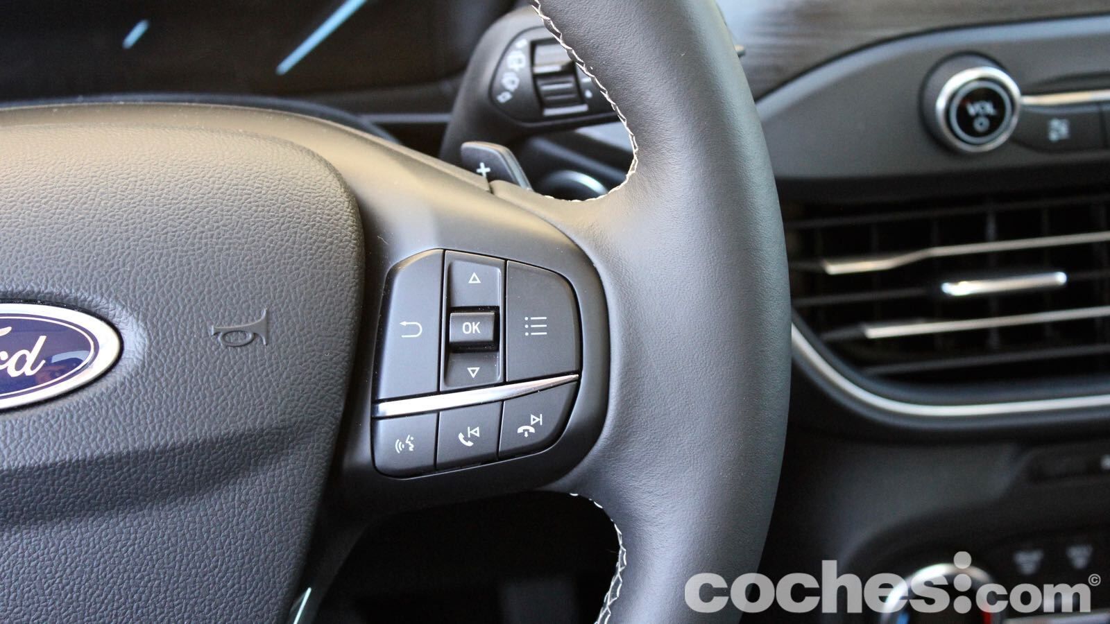 Los materiales de los Vignale rayan a gran altura. La calidad percibida a bordo es muy superior a la de la generación anterior, y encontramos buenos materiales, gustosos al tacto, tanto la parte superior como la inferior del salpicadero. También los botones están más cuidados que los que encontrabas en Focus de anteriores generaciones. Sin embargo, el ajuste entre piezas delata que estamos ante un generalista impecablemente vestido… pero sin la precisión que vemos en algunos coches premium.