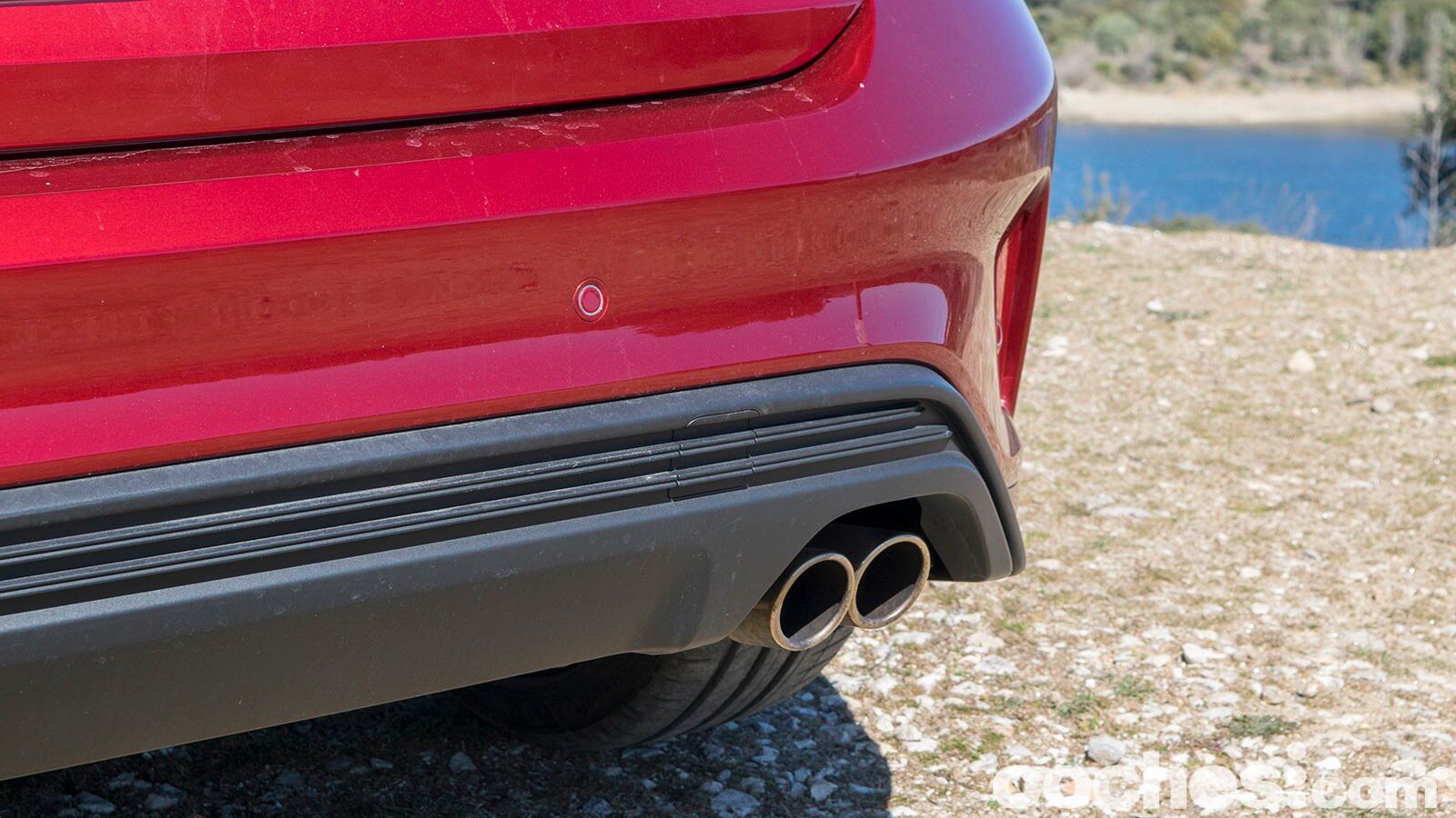 En la zaga se ha buscado la horizontalidad mediante esos pilotos traseros con forma de ‘L’ tumbada que apuntan hacia el centro. Precisamente en mitad del portón encontramos tanto el logotipo del óvalo como el nombre del modelo. Si volvemos a la deportividad tenemos que mirar a la parte superior, donde aparece un marcado spoiler de techo, y a la parte inferior, donde hay un difusor en color negro y dos salidas del escape en el lado derecho.