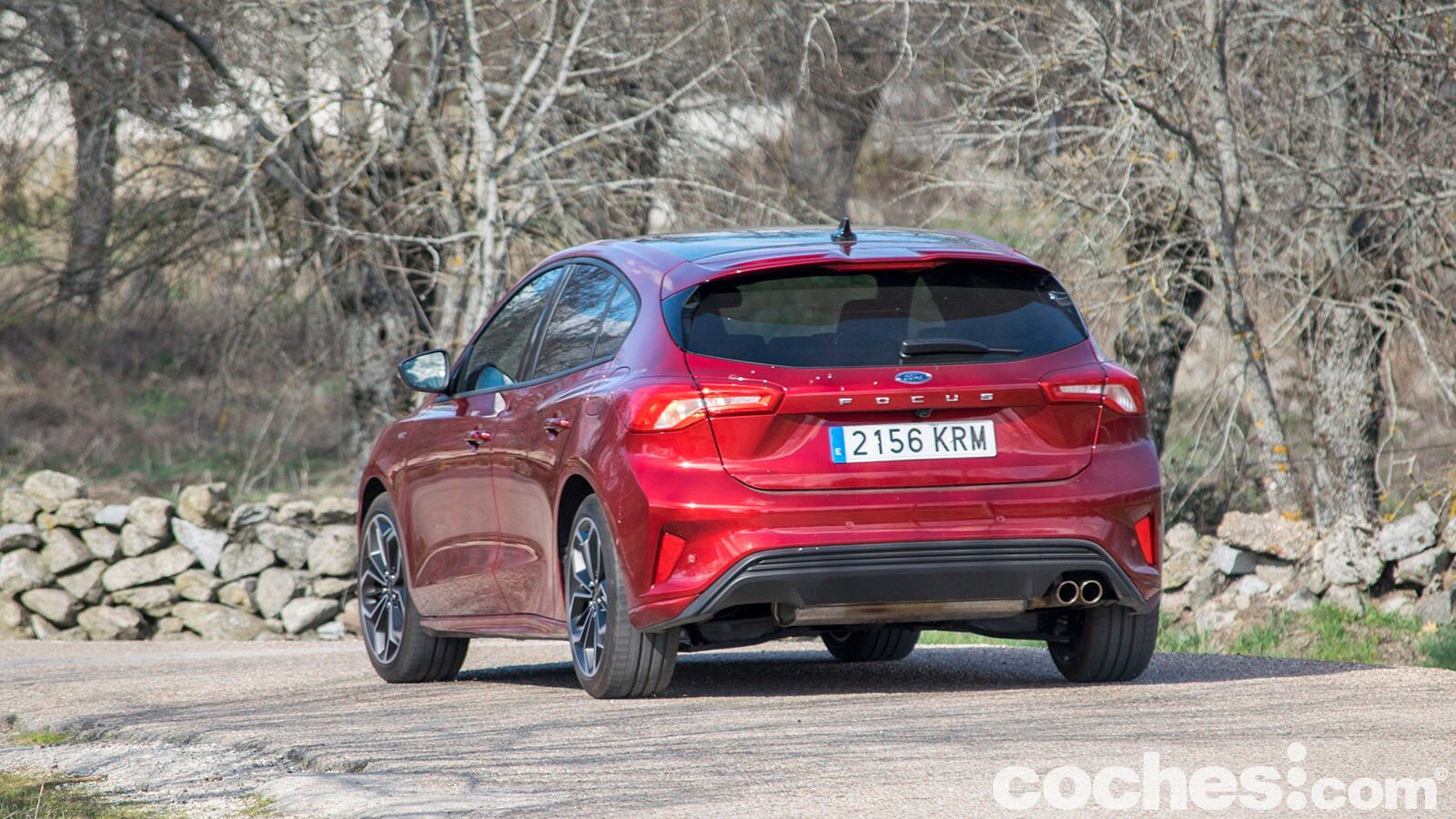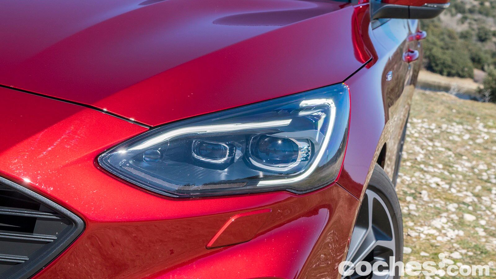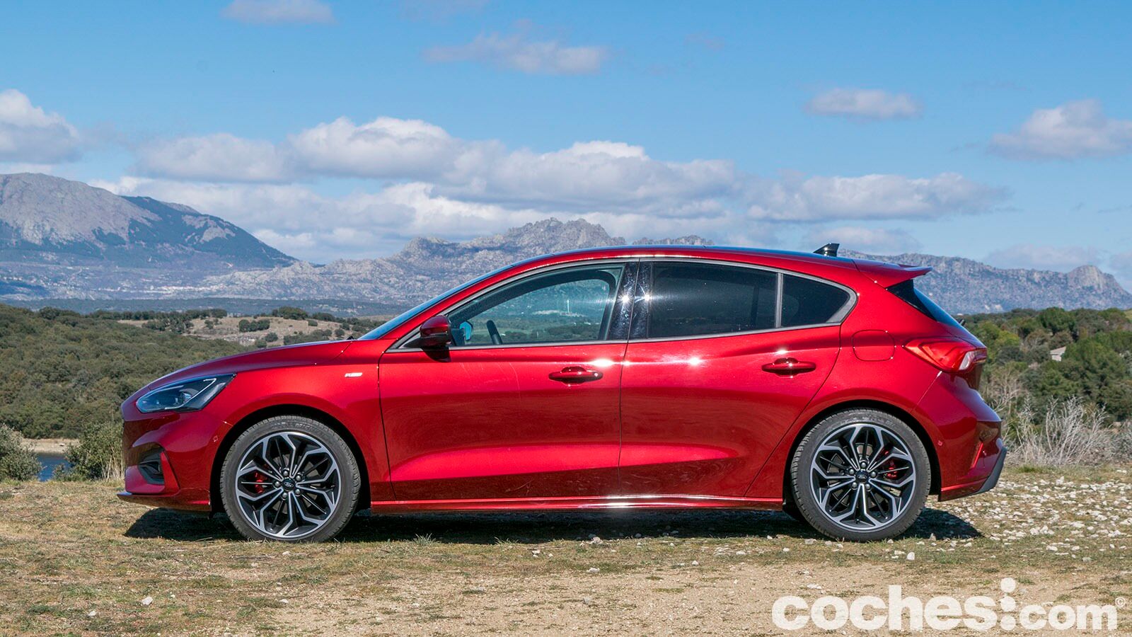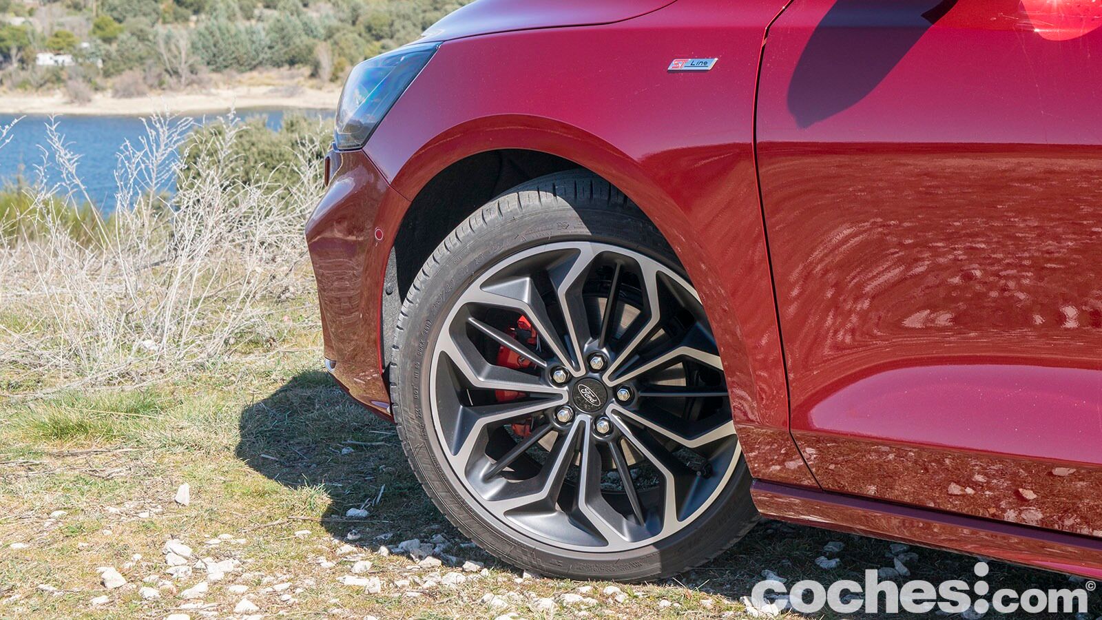 Los paragolpes en este acabados buscan esa imagen más agresiva y en la parte delantera eso se traduce en unas generosas tomas de aire. En el lateral encontramos unos faldones algo más trabajados y también las llantas de 18 pulgadas con acabado bitono que lleva nuestra unidad con pinzas de freno en color rojo. Son destacables los cambios en su silueta, con el habitáculo ligeramente retrasado y una zaga que recuerda ligeramente a un familiar (aunque se diferencia bien del Focus Sportbreak).