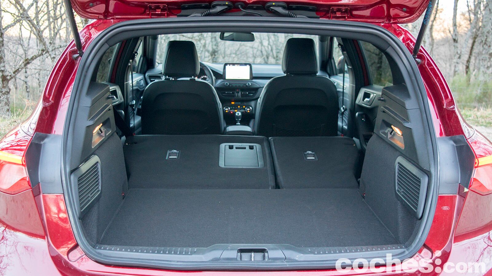 Otra bondad que puede llegar el maletero del Ford Focus es un doble fondo opcional para dividir la carga. En todo caso, bajo el piso encontraremos una rueda de repuesto de emergencia y, alojado en su interior, el subwoofer del sistema de sonido. A través de las plazas traseras se puede acceder al maletero y cuando las abatimos en dos partes (60:40) nos dejan con una superficie plana que alcanza los 1.354 litros de capacidad.
