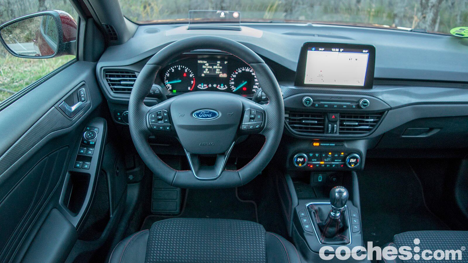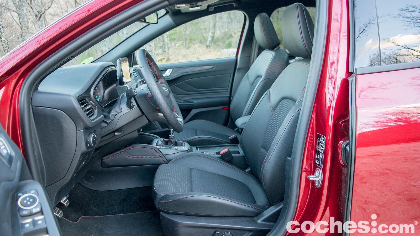 Esa elasticidad del motor hace que no sea necesario recurrir demasiado al cambio manual de seis velocidades (que es la única opción con esta mecánica). Pero cada vez que llevamos la mano derecha al pomo metálico lo cierto es que nos llegan sensaciones agradables. Cuenta con un tacto preciso y unos recorridos no demasiado largos. Igual se le podría pedir una rigidez mayor, pero para eso habría que saltar al deportivo Focus ST.