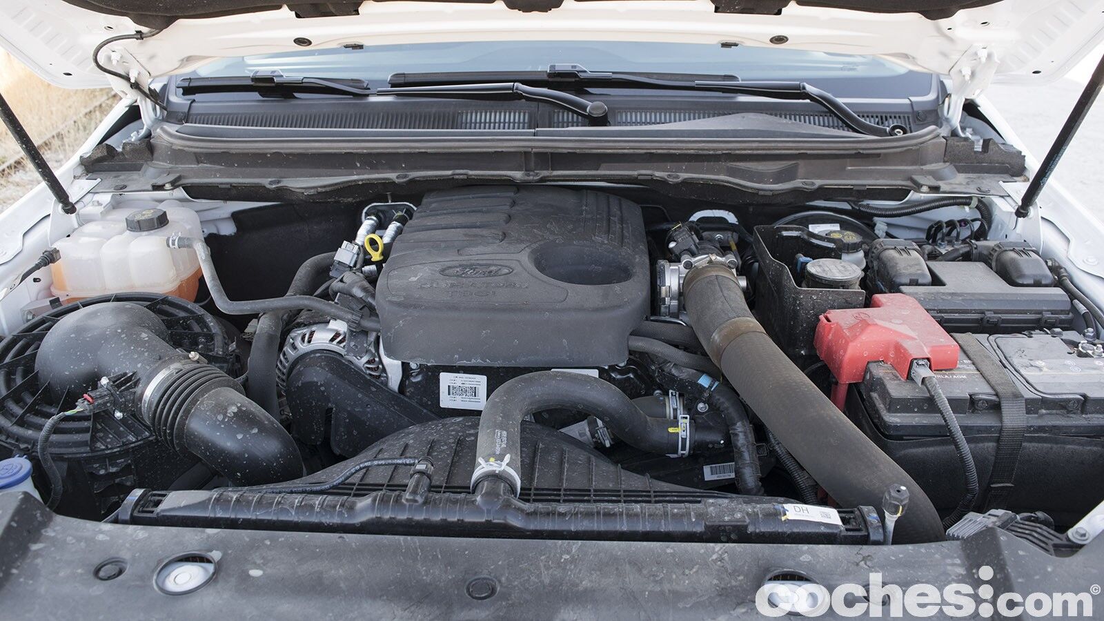 El Ford Ranger también cuenta con una gama de motores sencilla que solamente cuenta con dos opciones diésel. La primera es precisamente la que lleva nuestra unidad de pruebas. El 2.2 Duratorq TDCi es un cuatro cilindros con 160 CV y 385 Nm que se puede configurar con cambio manual (como en nuestro caso) o automático de seis velocidades. Por encima está el cinco cilindros 3.2 TDCi con 200 CV, exclusivo para el acabado Wildtrack y también disponible con los dos cambios.