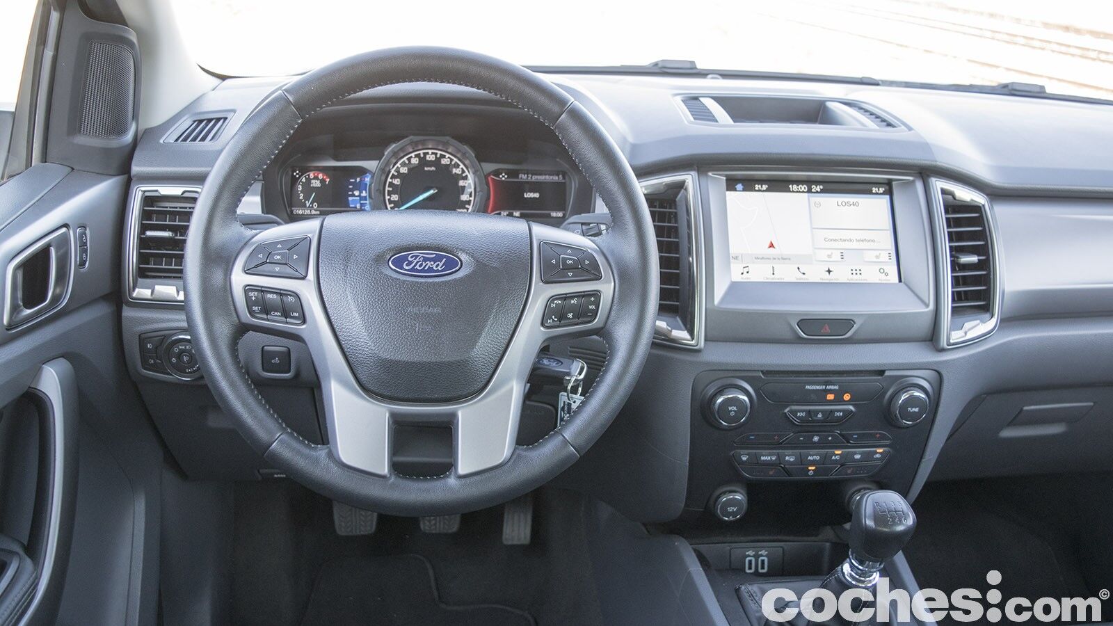 Subir a bordo del Ford Ranger ya es una experiencia de por sí. Su posición de conducción es altísima y desde allí tendremos una sensación solamente comparable a la de llevar un camión. Cuando ponemos en marcha su mecánica nos queda claro su condición debido a que el refinamiento no llega al nivel que encontramos en los turismos. Las vibraciones y el ruido se filtra ligeramente al habitáculo, aunque hay que reconocer que se notan las mejoras de insonorización, permitiendo que sea uno de los mejores del segmento.