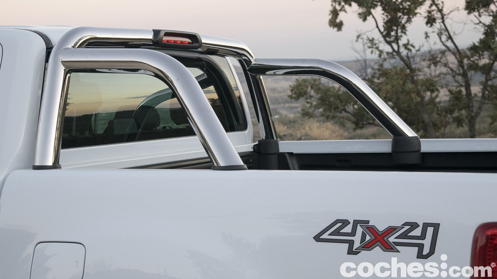 En la zaga la simplicidad es máxima, con unos pilotos verticales para permitir el acceso a la caja y los logotipos del modelo. El tirador y la parte baja del paragolpes van cromados, al igual que esos llamativos tubos que integran la tercera luz de freno y que le dan un toque rústico. En nuestro caso, la caja va abierta, pero en el catálogo de accesorios hay algunos elementos que permiten cubrirla y sacarle un mayor partido.