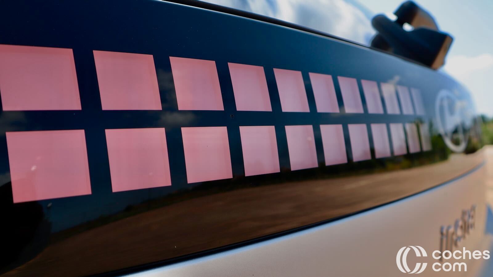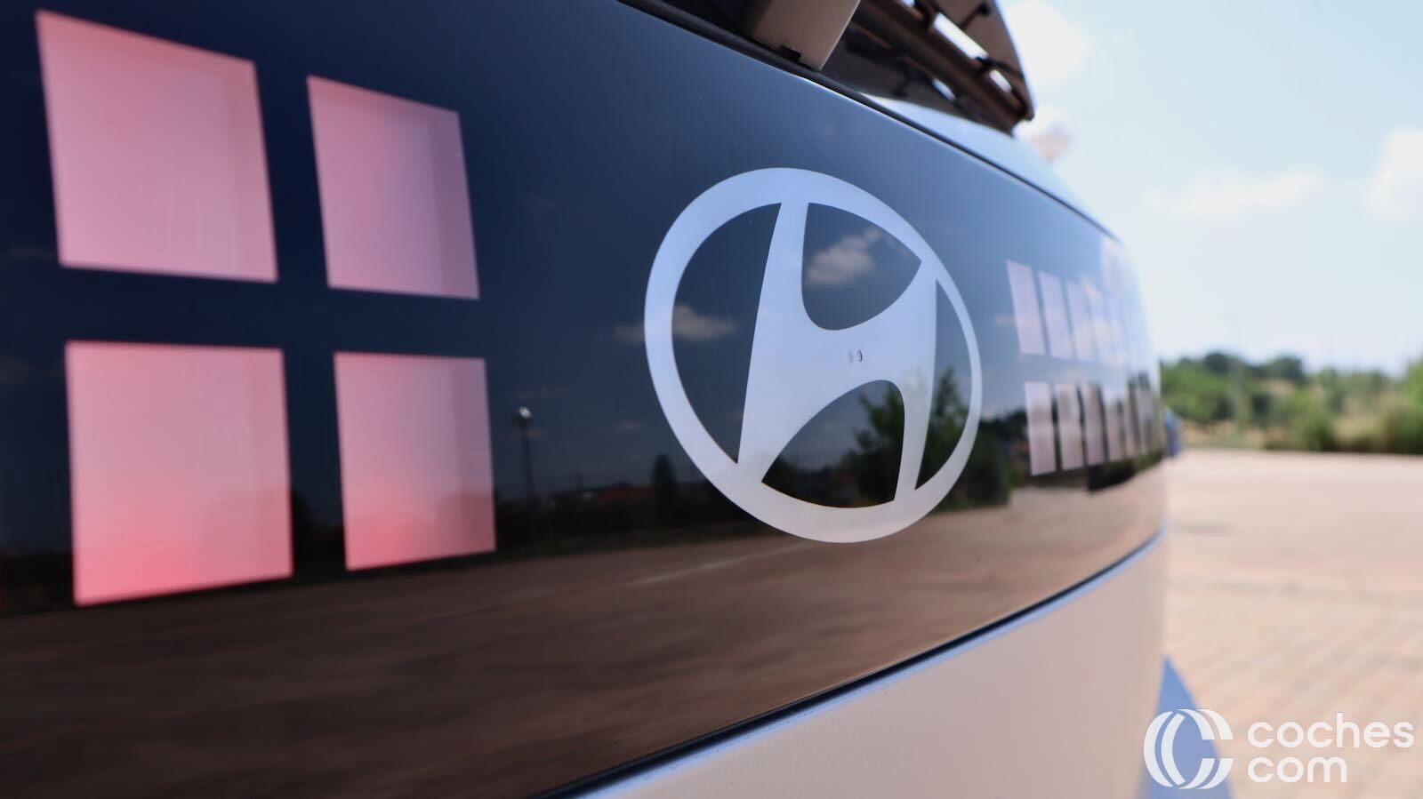 Ya en la zaga, 48 cuadrados de LED configuran los pilotos posteriores, que ocupan casi toda la anchura del coche con el logo de Hyundai en el centro. Se repite el patrón de la parte delantera con luces redondas en la parte más baja y unos paragolpes en plata