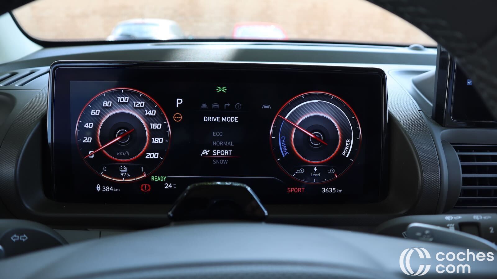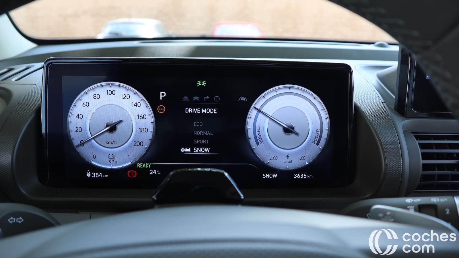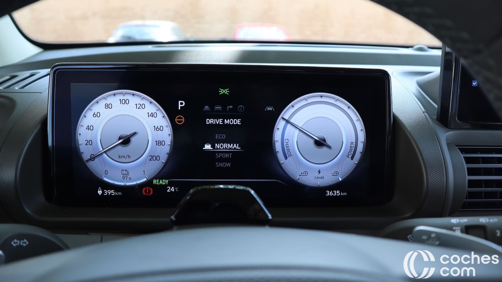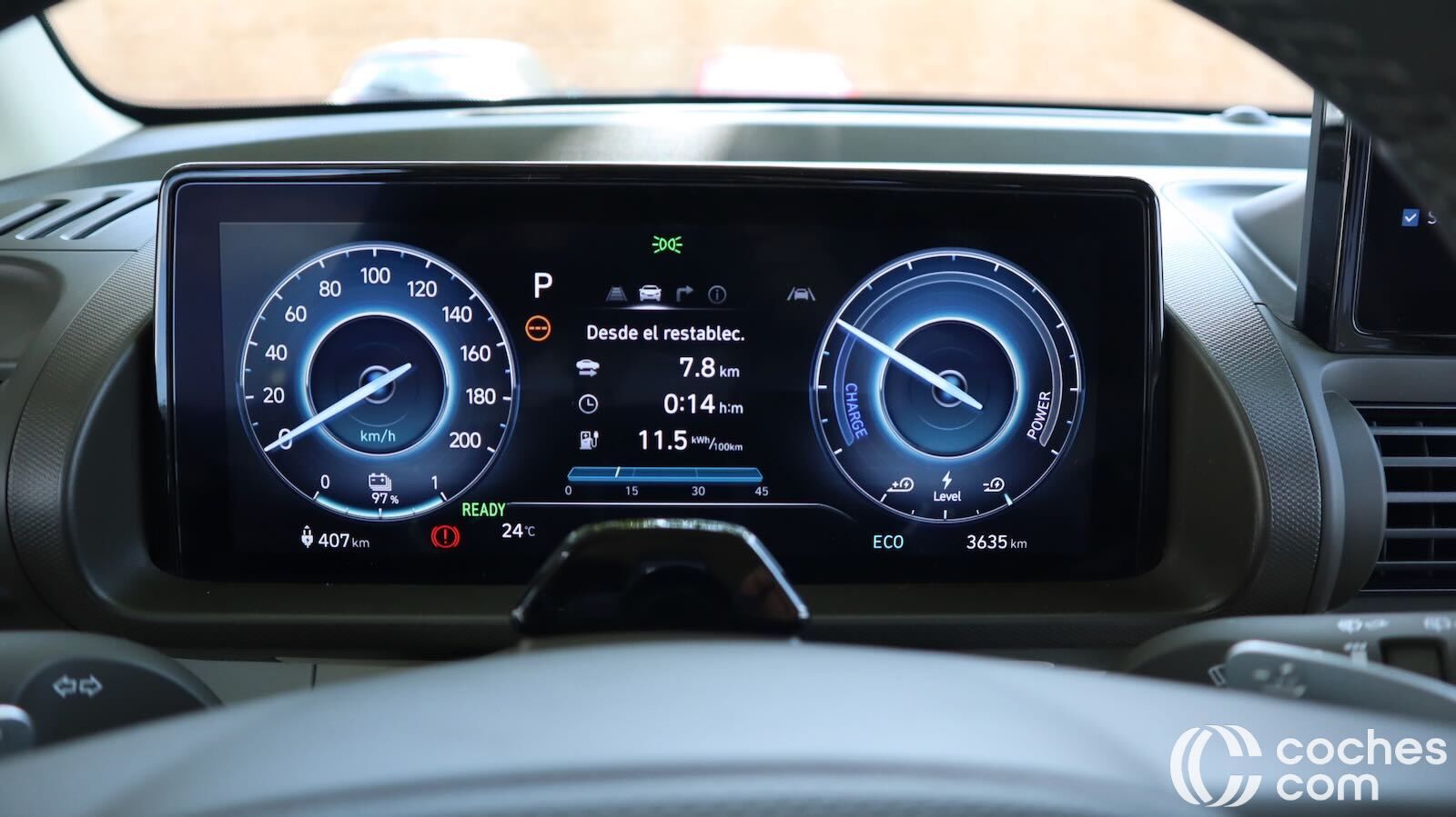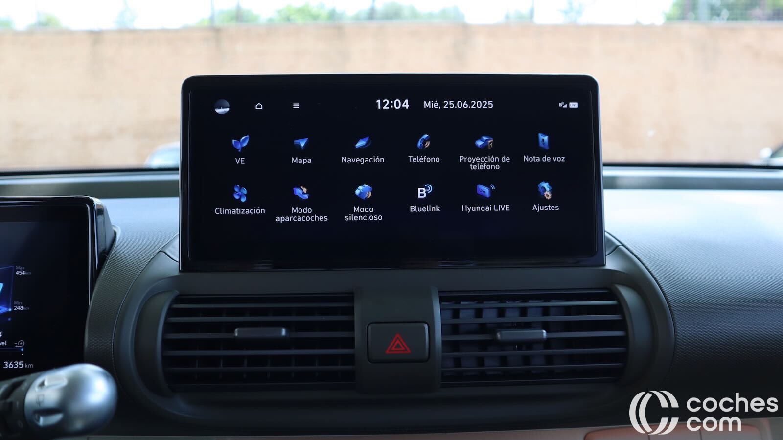 No ha escatimado Hyundai en pantallas. Cuadro de instrumentos digital de 10,25 pulgadas, con distintos modos para visualizar la información, uno jugando con cubos o uno más tradicional que varía en función del modo de conducción elegido. Y no falta la visión del ángulo muerto al activar los intermintentes.