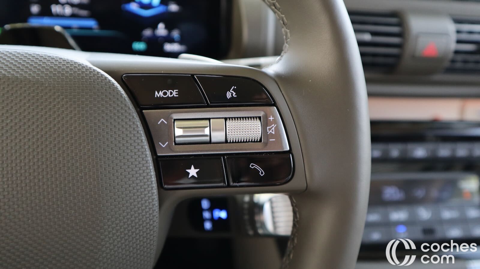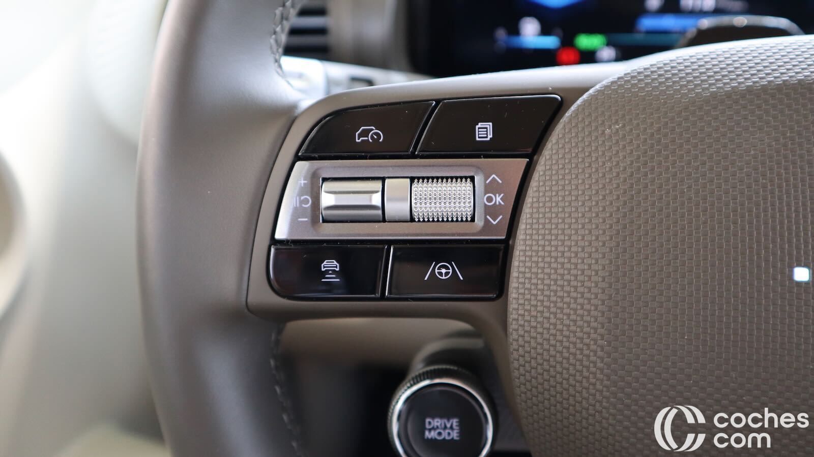 Posición de conducción bastante erguida, pero con el asiento y un volante que tiene las regulaciones de cualquier vehículo de una categoría superior, tanto en profundidad como en altura. Además, cinturones regulables en altura, algo que se ve muy poco. El volante es un aro casi redondo, ligeramente achatado en su base, que como los últimos lanzamientos de la marca, prescinde de logo. Mandos físicos para sistemas de asistencia a la conducción y para controlar también las pantallas.